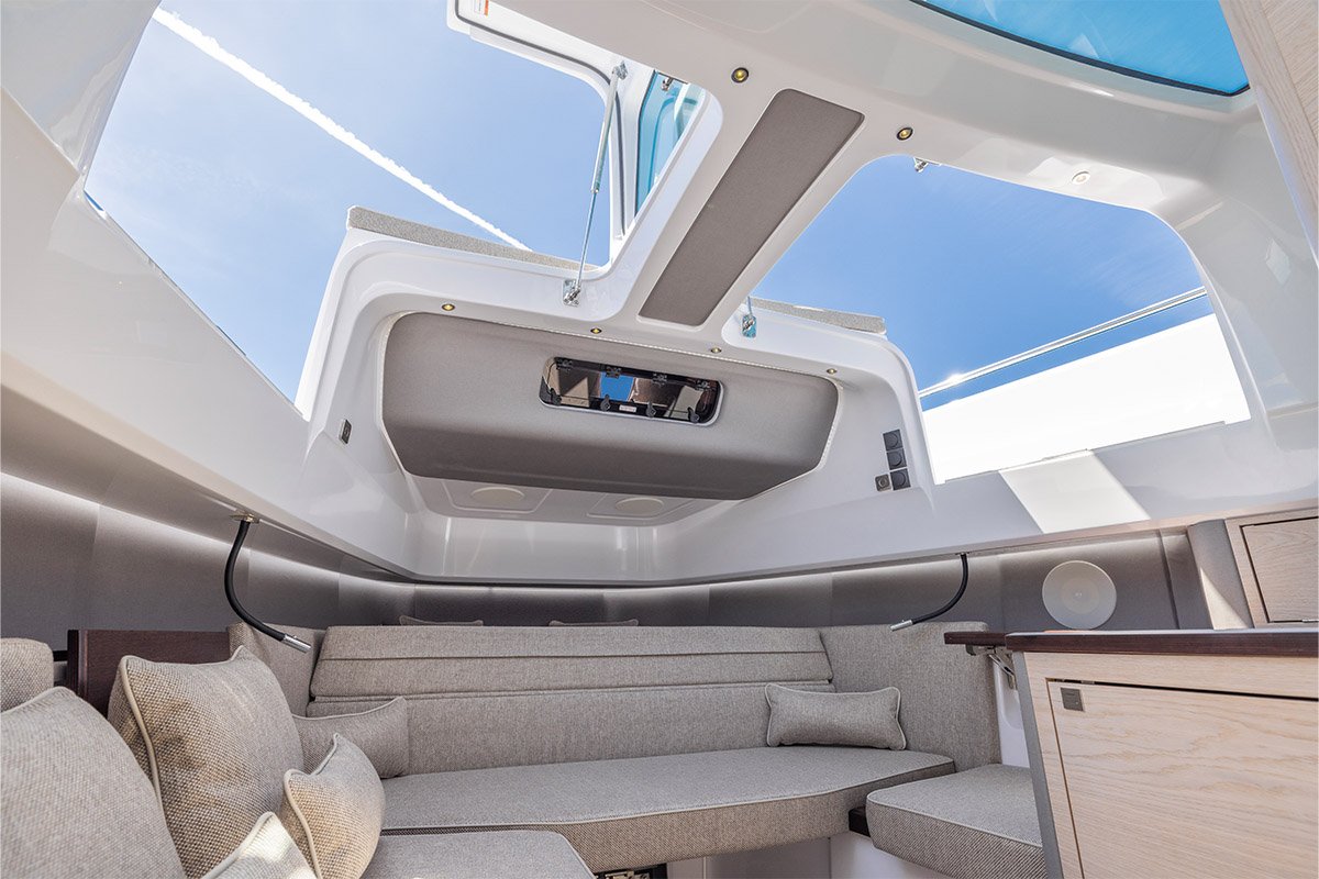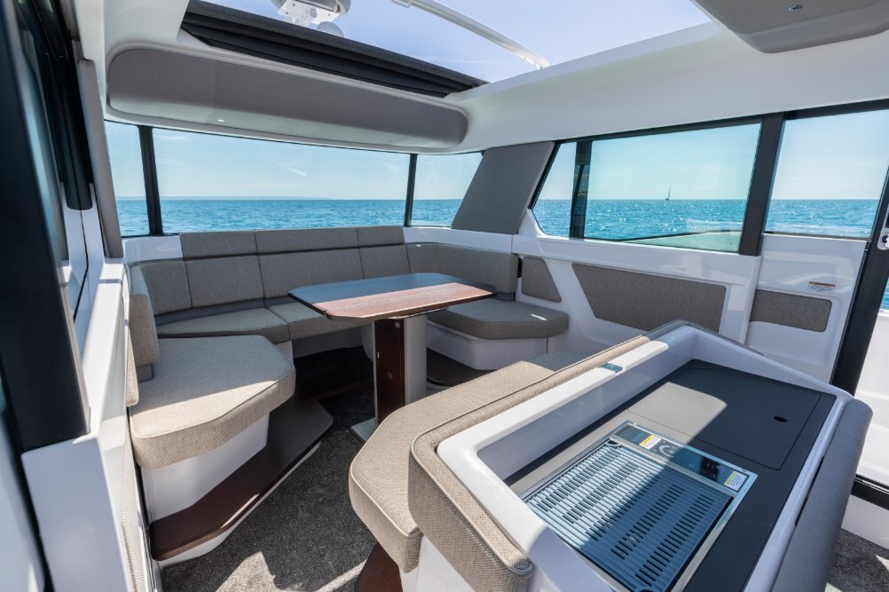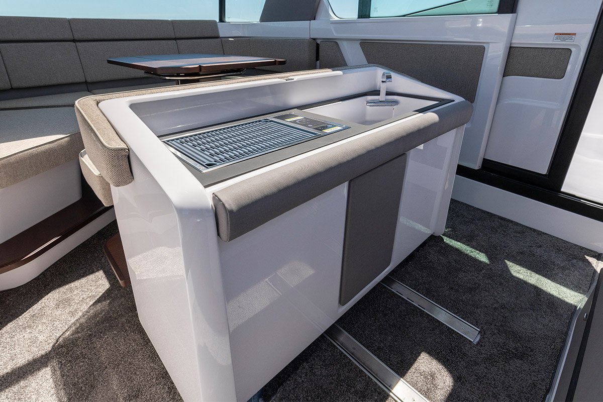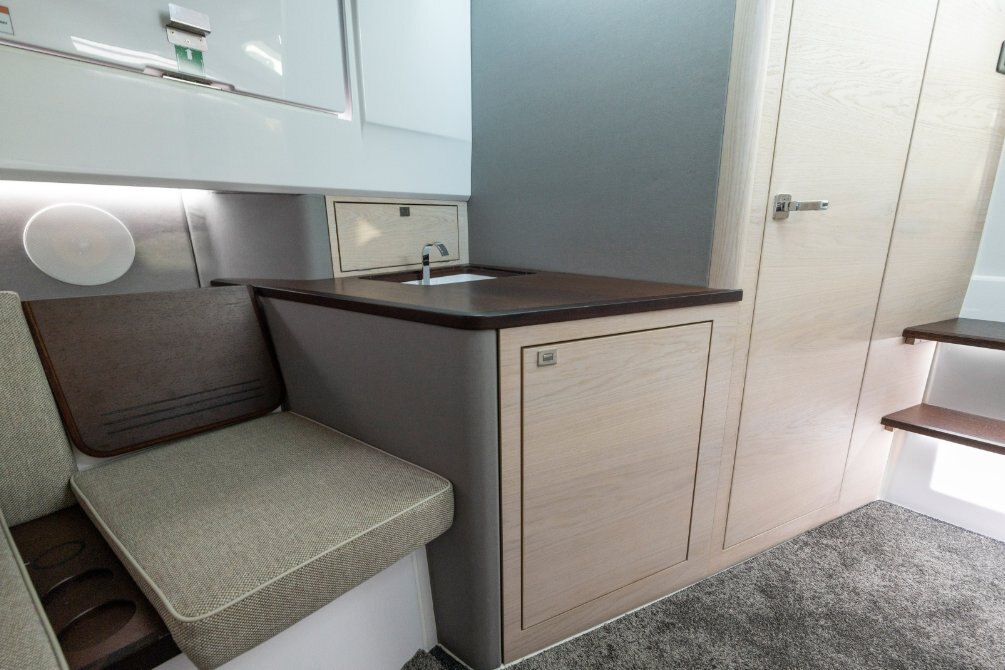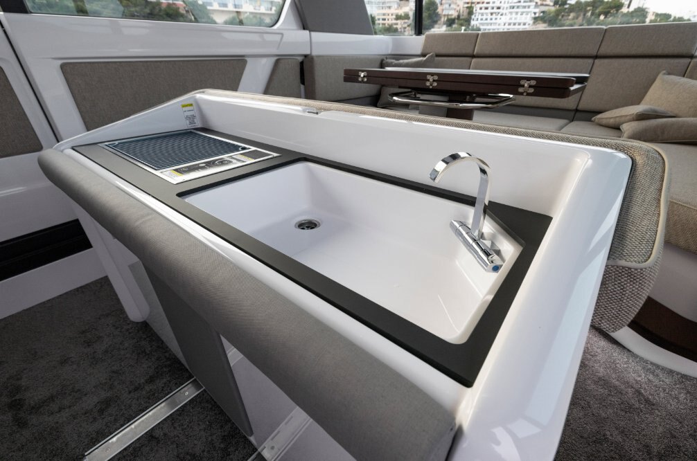 The cabin’s wet bar with fridge, sink, storage compartment and optional cooktop are conducive for lingering lunches and sunset aperitivos.![]() |