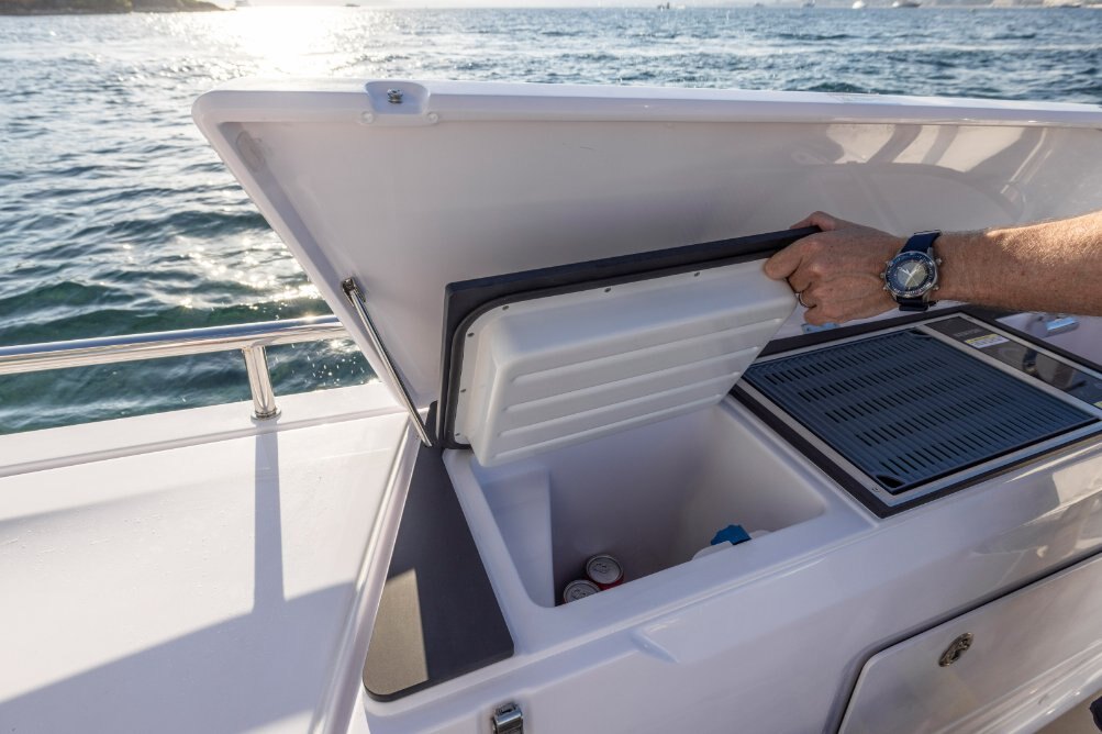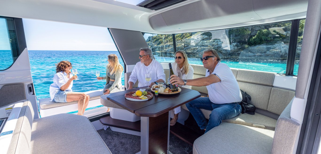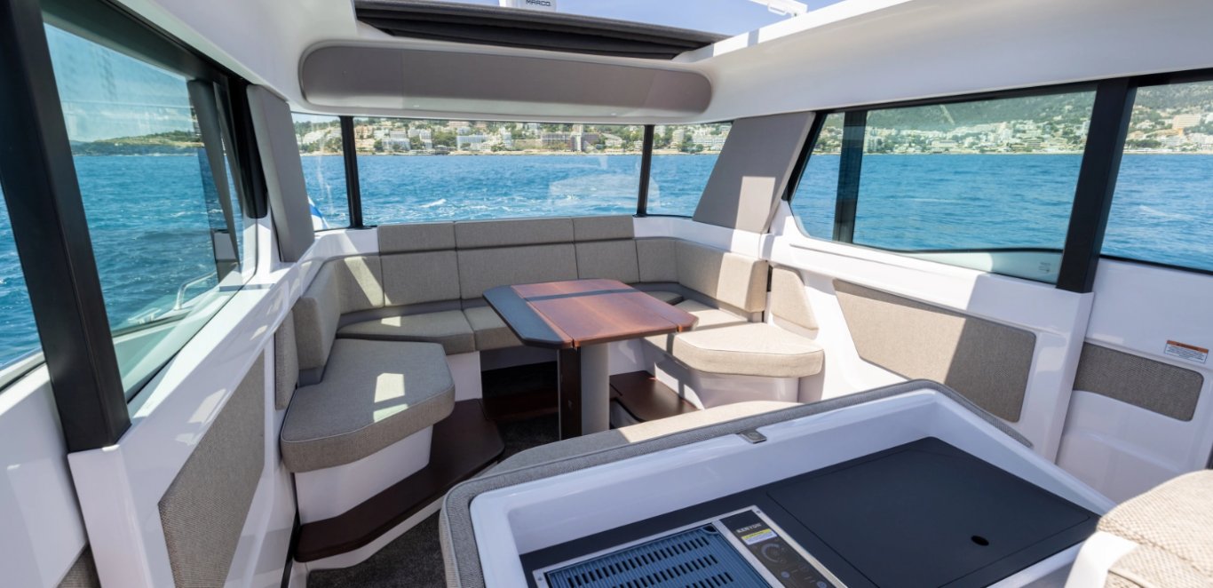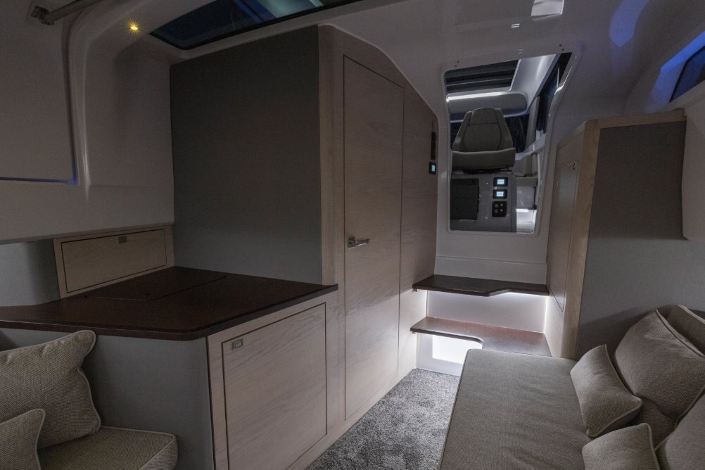The cabin’s wet bar with fridge, sink, storage compartment and optional cooktop are conducive for lingering lunches and sunset aperitivos.![]() |