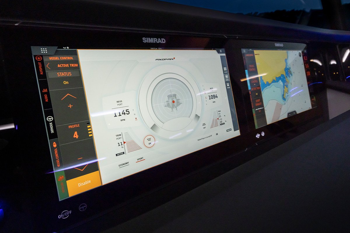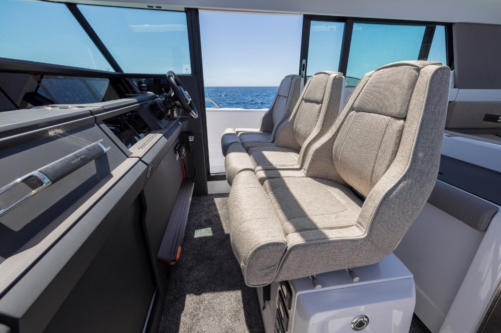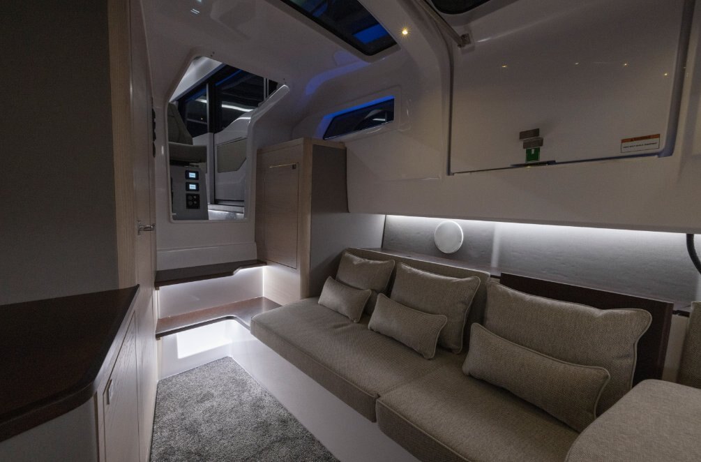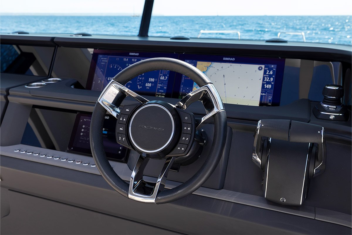 From an Intelligent Steering Module that controls the bow thruster, trim tabs, and audio, to innovative Simrad navigational touchscreen displays with a custom built Axopar User Interface, the Axopar 45 is fitted with impressive technological features to ensure the best-in-class manoeuvrability and handling. These integrated functions make the cockpit remarkably clean and leave the dashboard neat and clutter-free. Standard features on the Axopar 45 XC Cross Cabin include features such as the gullwing doors that forge a seamless connection with the outdoors and an adjustable wet bar and table in the cabin for more flexible use of space. Open the dual electric sliding canvas roofs and double sliding doors to let in the sea breeze and sun’s warming rays. Alternatively, close the doors and roofs to relax in the shade, or instantly be protected from the elements. The midship balconies are conducive for getting on and off the boat with ease, creating more space, and can transform into a sociable seating area that connects to the spacious cabin when the sliding doors are open. This combination makes the 45 XC one of the most multifunctional and sociable boats on the market. |