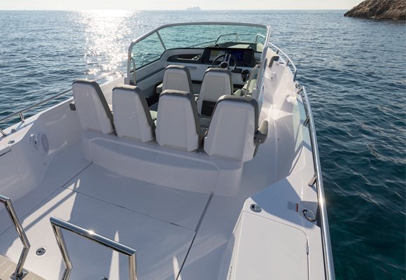 | A perfect choice even for those who have never even considered buying an 8m motorboat up until now, the ‘user-friendly’ characteristics and safe & responsive nature of the Axopar 28 Open version make this an ideal first-time buy. |