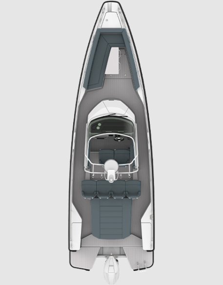 The BRABUS Line Trim Package can be further enhanced by selecting one of our two exciting hull & roof colours: Choose from vibrant and playful Miami Blue, or a more discreet Platinum Grey. The Colour Edition is a duo-tone colour package whereby specific parts of the boat are coloured and other parts are left uncoloured in standard delivery white.