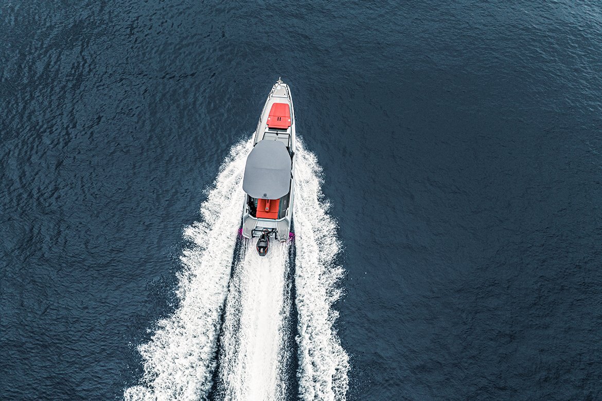 Designed for water sports enthusiasts, the agile sportster features a water-ski pole in an immaculate matte black finish for water-skiing, inflatable towing and wakeboarding as well as a swim ladder for easy access to the boat from the water. The multi storage aft layout option is perfect for owners with a large collection of water toys and gear, from snorkeling fins to SUP boards. Those who are rather looking for more socializing space will also find a right match: The U-sofa aft layout option includes a table and cushions. Drivers choosing this option can cap their days off by enjoying sunset drinks and alfresco meals with their friends.