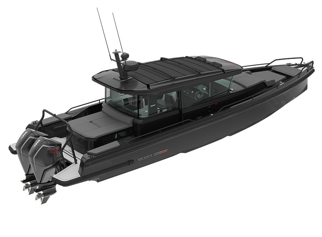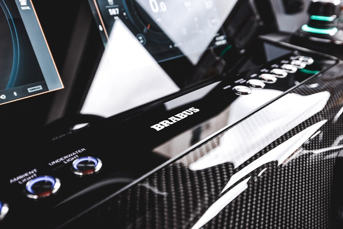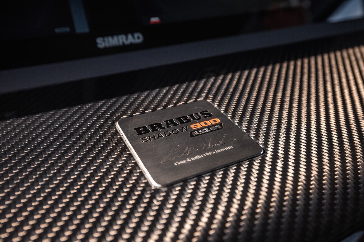 Electronics - The BRABUS Shadow 900 features a Simrad®️ dual touch -screen full width, ‘Glass Helm Information Display' with an updated BRABUS User-Interface, including G-shock monitoring, access to the boat’s main navigation, engine management, on board entertainment and driving-assist features. With the extended Navigation Package the helm is expanded into a four screen “bridge” setup that includes additional functions like displaying the speed for the passengers, audio controls and also a digital Panerai watch.