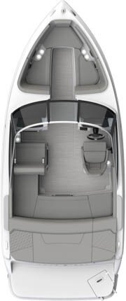 • Windshield w/walk-thru, full-height, curved glass, exclusive design