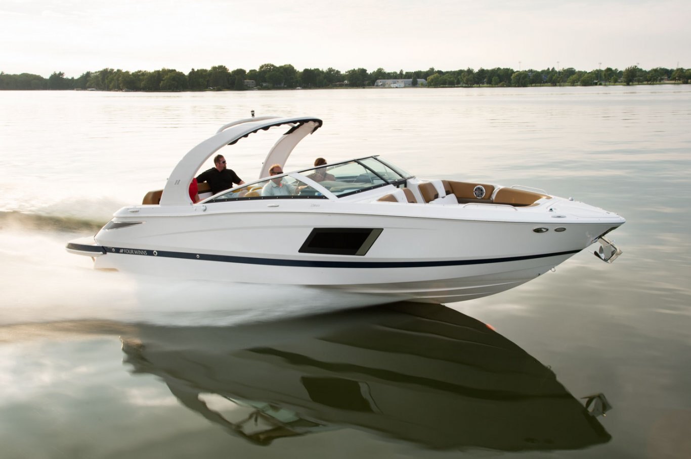 - Windshield w/walk-thru, full-height, curved glass, exclusive design