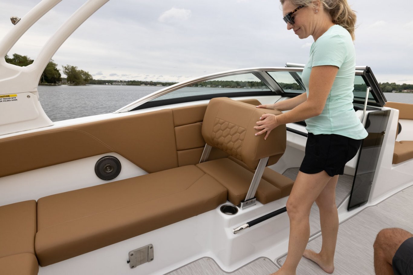 The H1-OB is poised to set the new standard in the 20-foot bowrider segment. Fine appointments, leather-wrapped grab handles, stainless cupholders, quilted stitching, all the details that raise the bar AND meet our expectations.