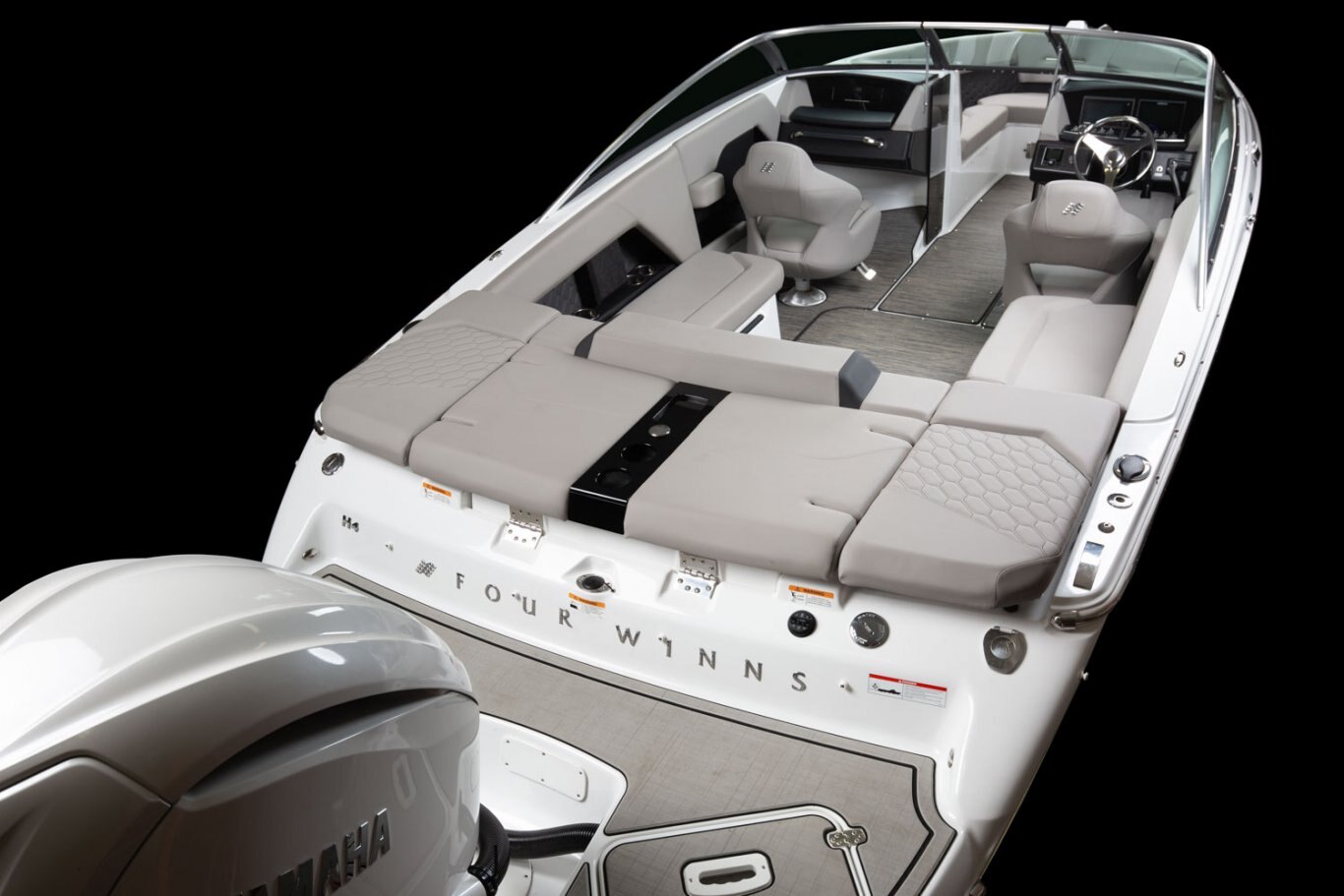 The next chapter begins with the H4. A re-imagined bowrider that brings a fresh sense of style and excitement to the category. Defined by its vertical bow stem, the H4 combines strength with a contemporary style, further proving that Four Winns is willing to break from tradition to create something bold and new.