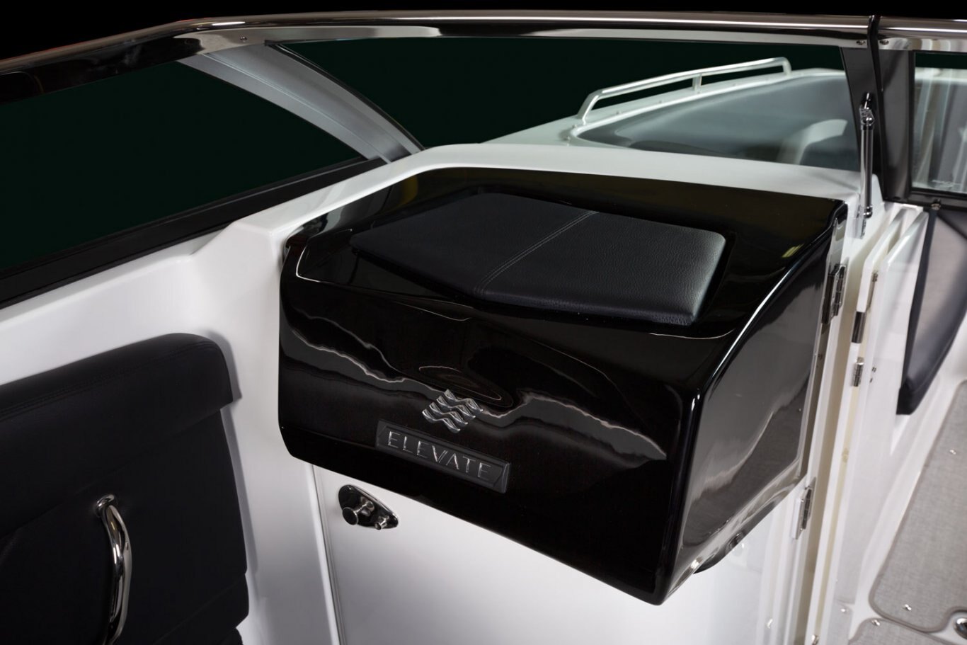 • Storage, bow, behind backrest at helm