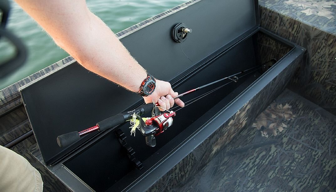 Lowe Boats Roughneck 1760 SC Camouflage Mossy Oak Shadow Grass BOW STORAGE