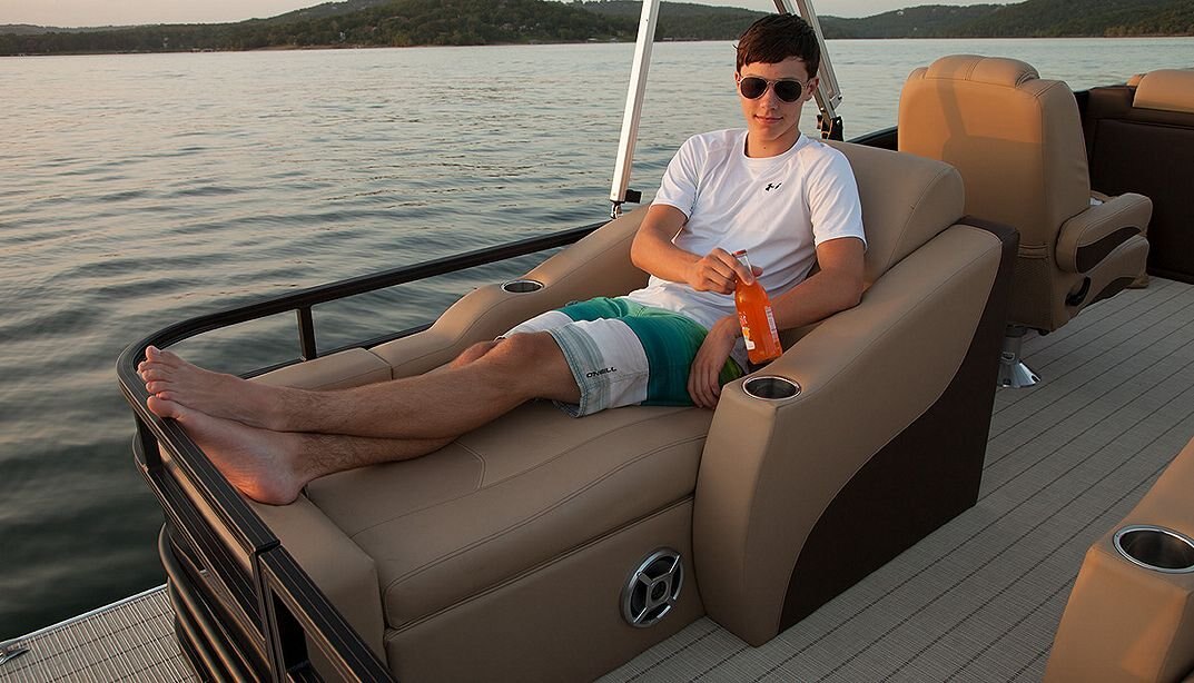 Our pontoon boats enjoy handsome consoles with automobile grade gauges, comfort-grip steering, and ready access to all of the captain's electronics.