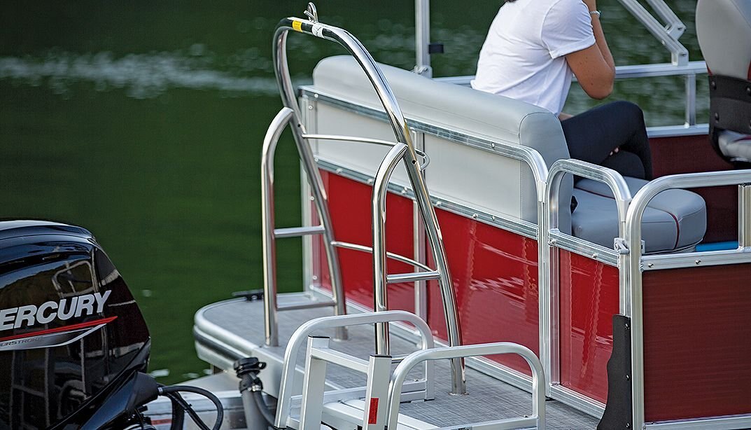 Lowe Boats ULTRA 162 FISH & CRUISE Metallic Red Exterior Gray Upholstery with Red Accent STERN 4-STEP LADDER