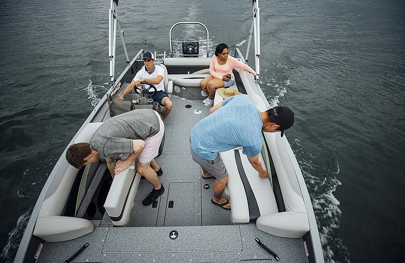 The SD has abundant storage under seat, in floor and in deck to fit everything that you bring aboard.