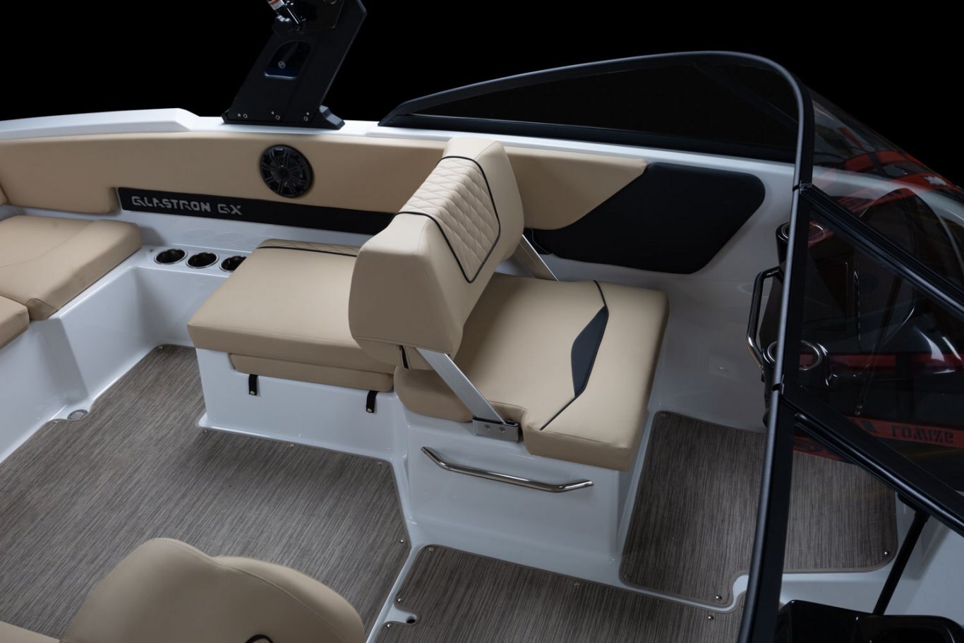 The lines so classic and sleek, make the boat look longer as it moves on the legendary SSV (Super Stable Vee®) hull. Built-in storage on the interior and wrap-around custom upholstery make it clear why you chose Glastron.