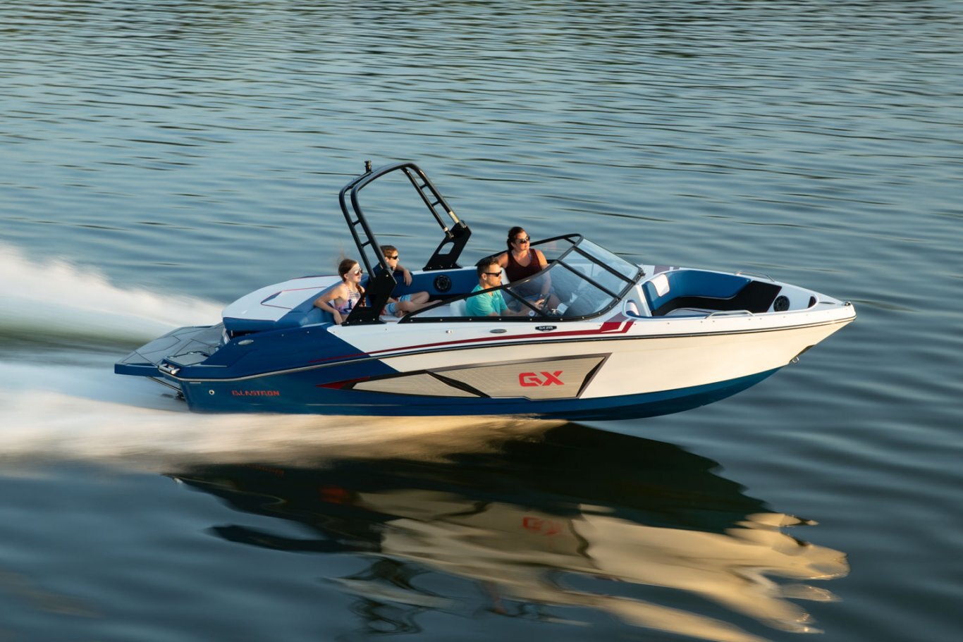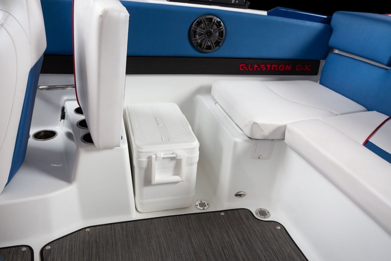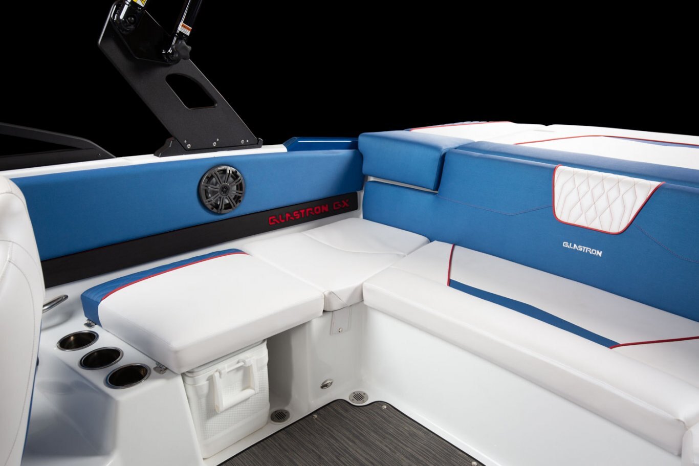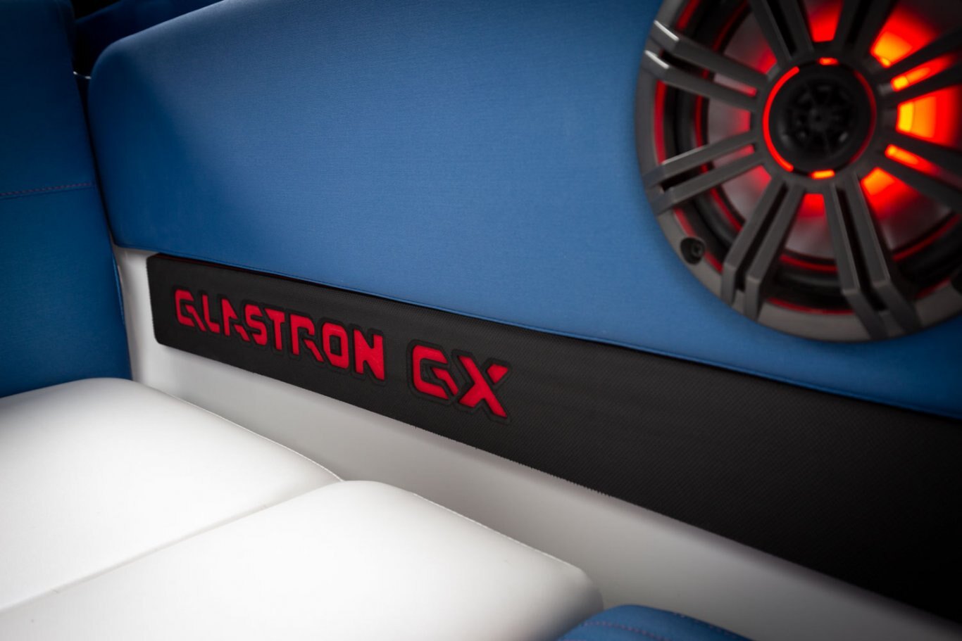 Bold GX Sport graphics and colors make this boat stand out. Adjustable port-side seat, large sun pad, and a bucket helm seat with bolster allow you to settle in. Add the premium sound package with RGB lighting to enjoy your tunes and light up the night.
