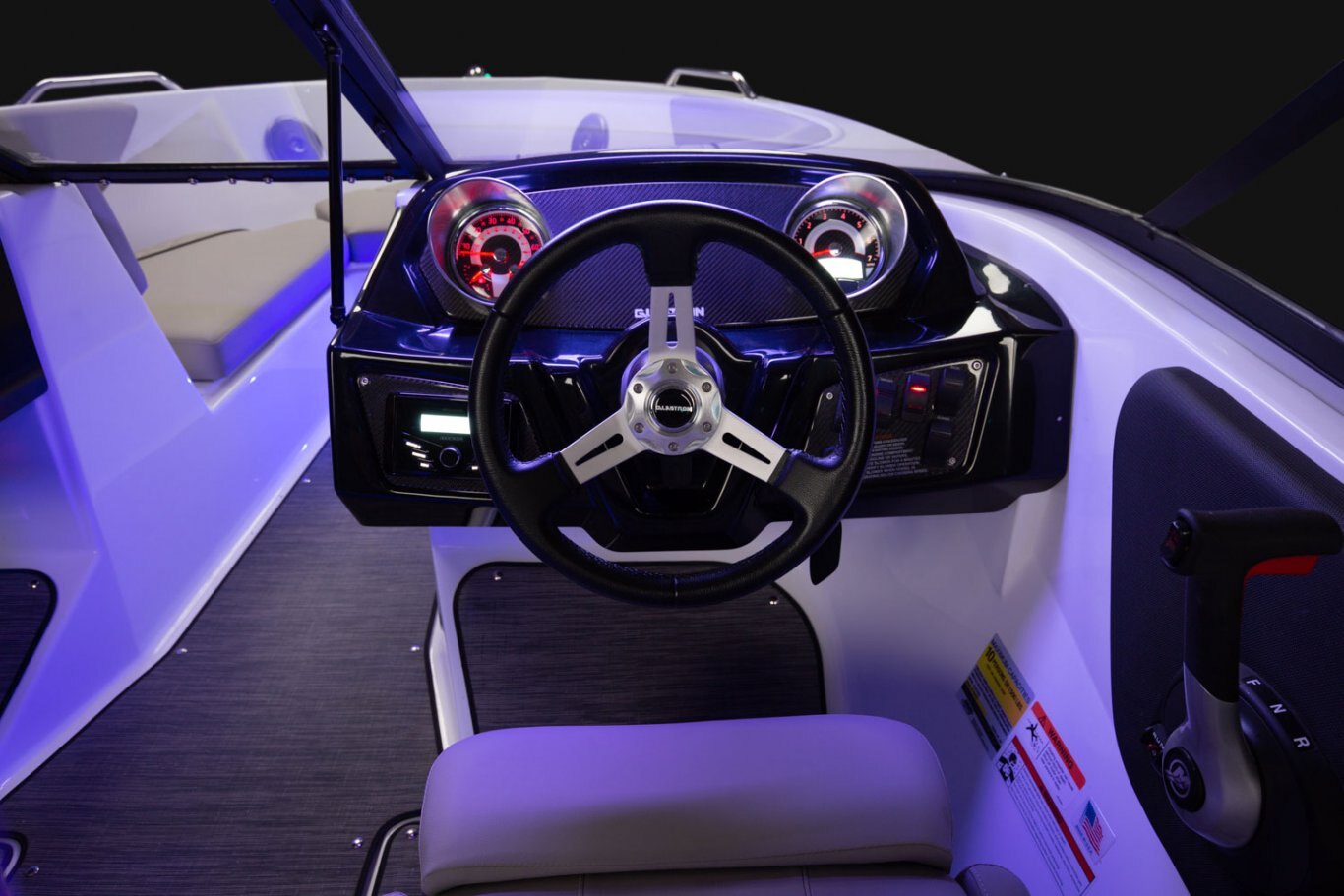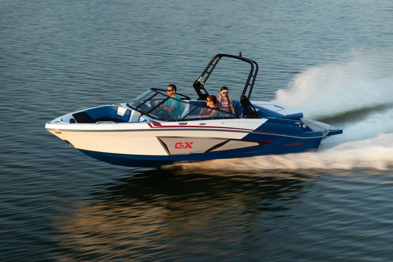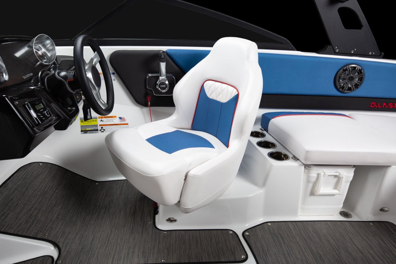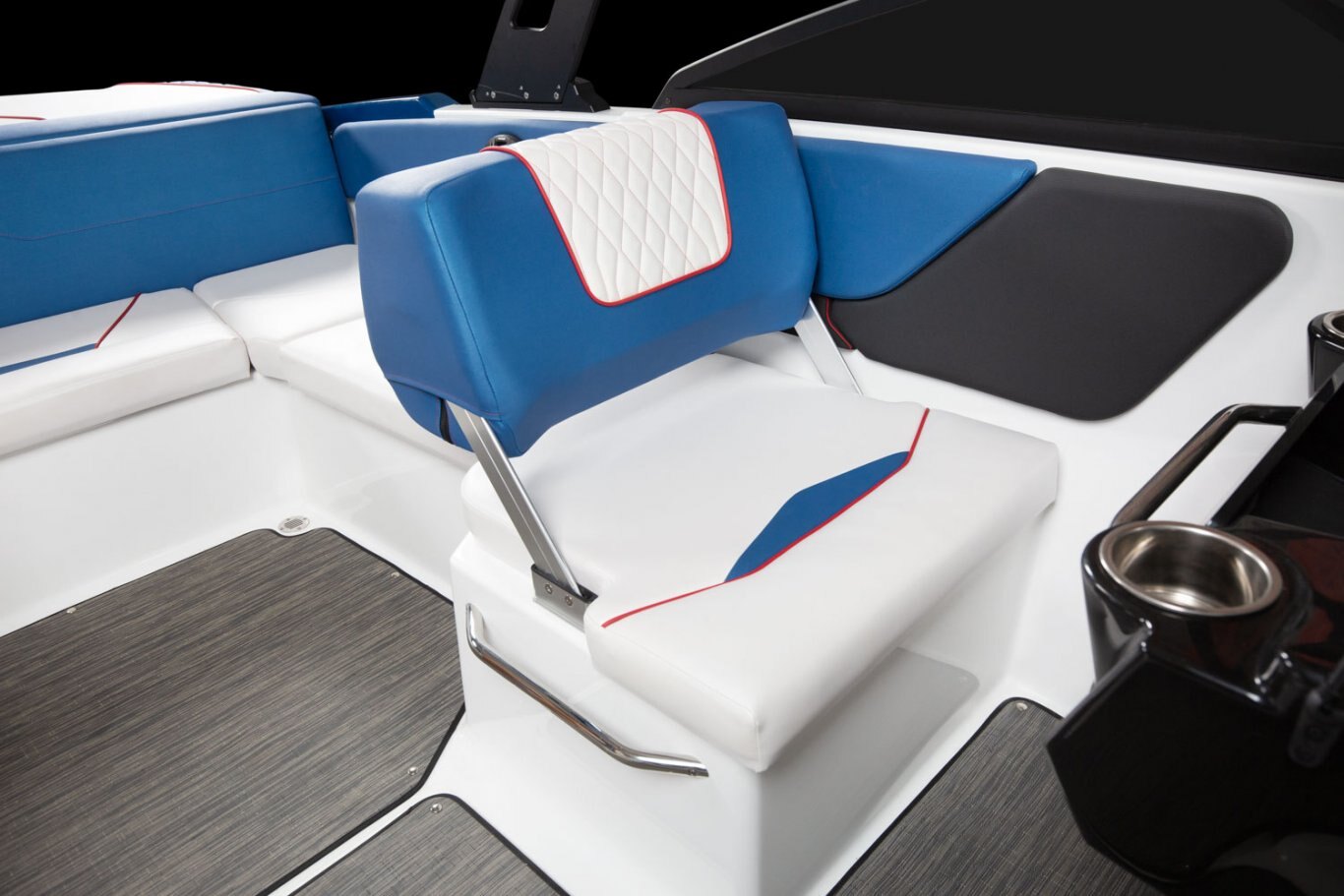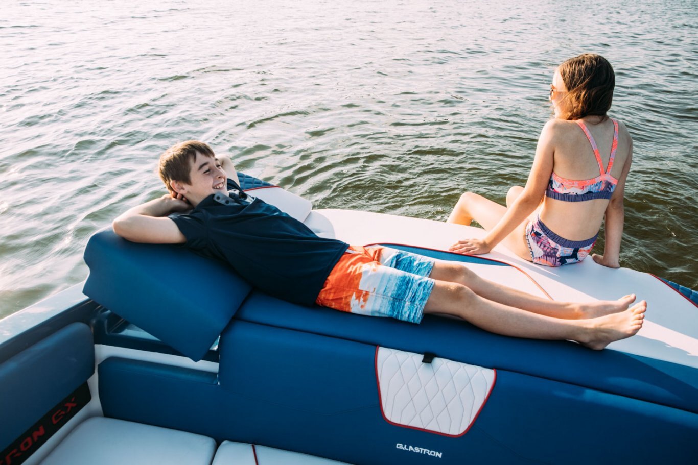 Bold GX Sport graphics and colors make this boat stand out. Adjustable port-side seat, large sun pad, and a bucket helm seat with bolster allow you to settle in. Add the premium sound package with RGB lighting to enjoy your tunes and light up the night.