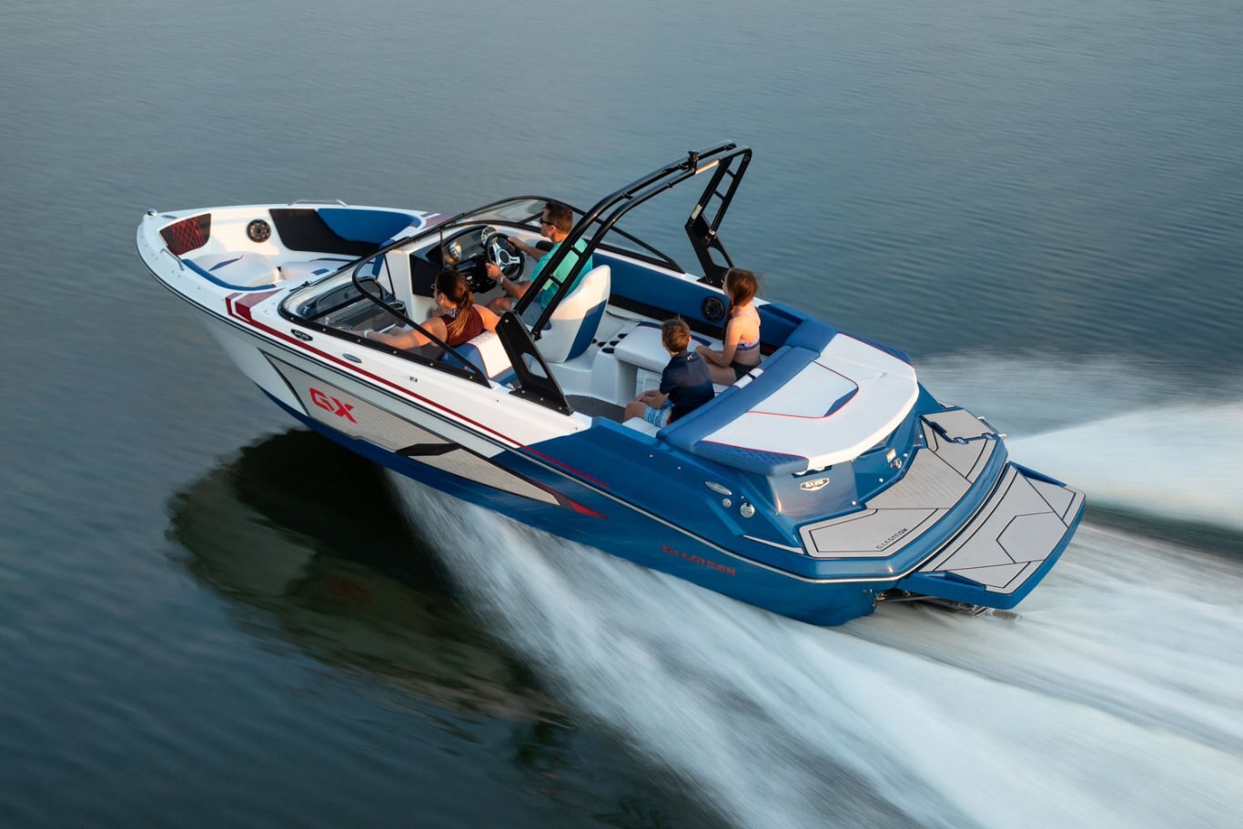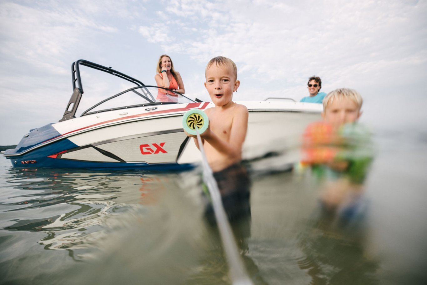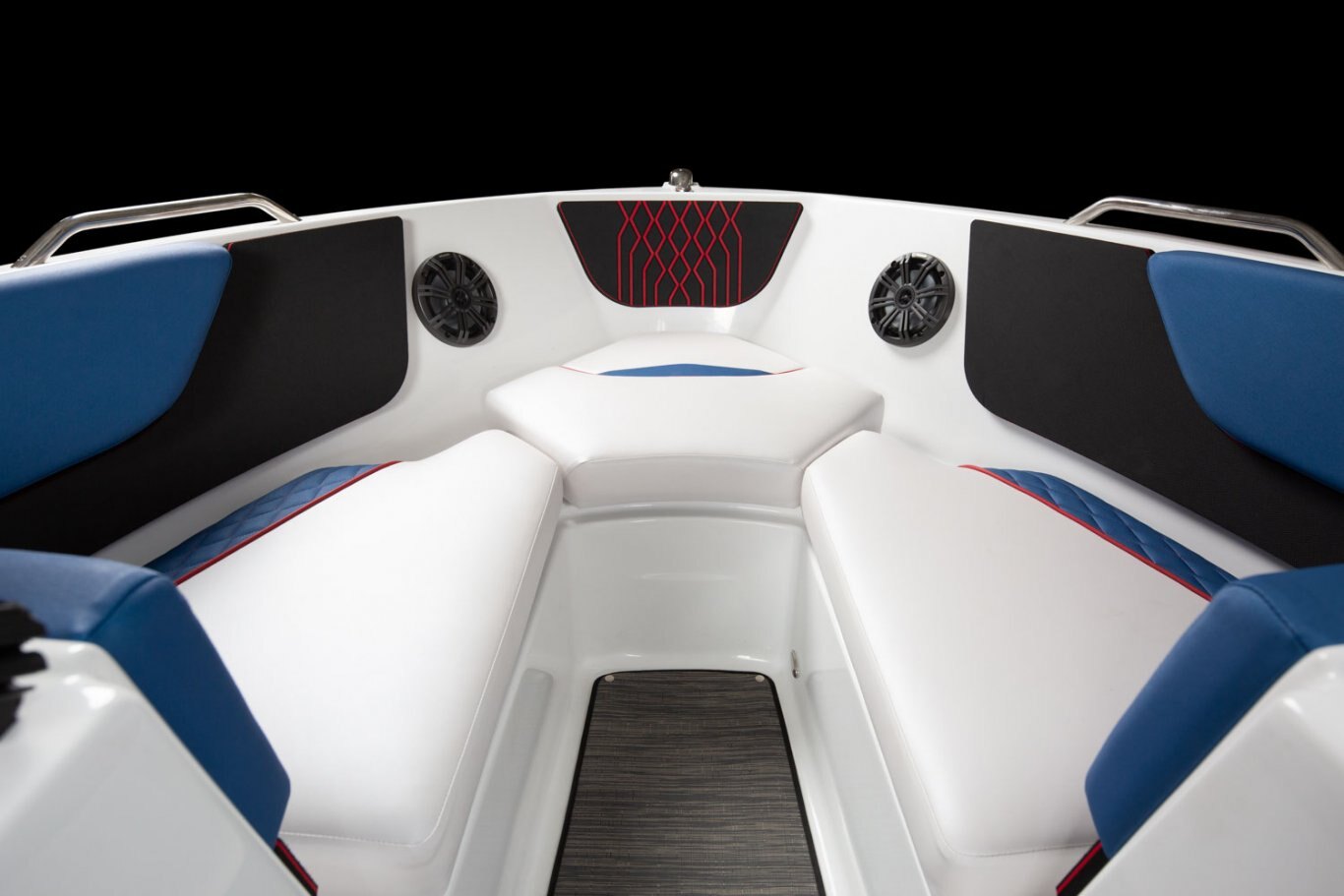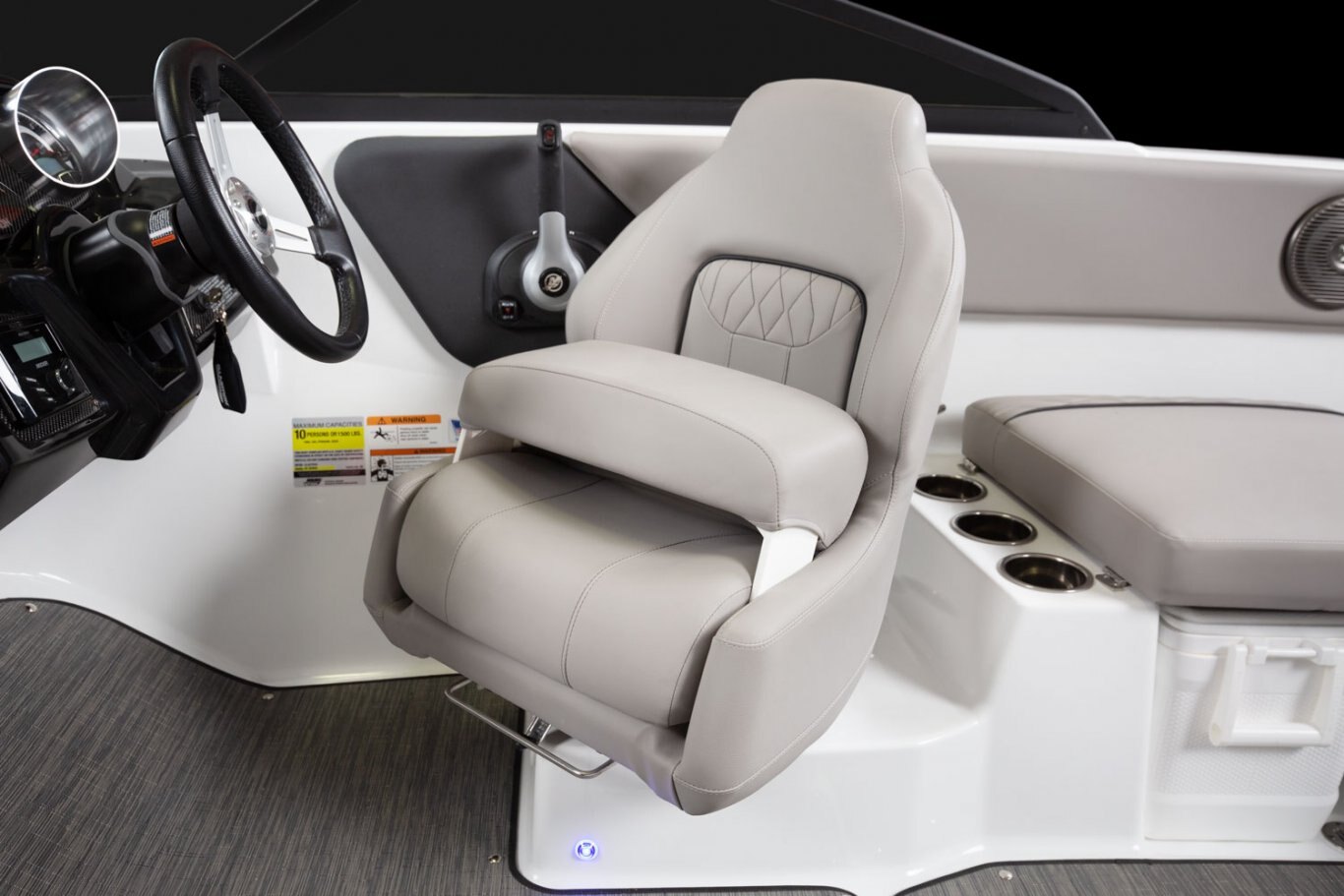 Bold GX Sport graphics and colors make this boat stand out. Adjustable port-side seat, large sun pad, and a bucket helm seat with bolster allow you to settle in. Add the premium sound package with RGB lighting to enjoy your tunes and light up the night.