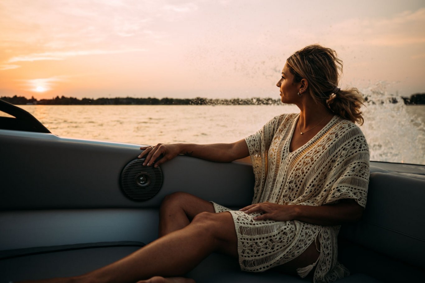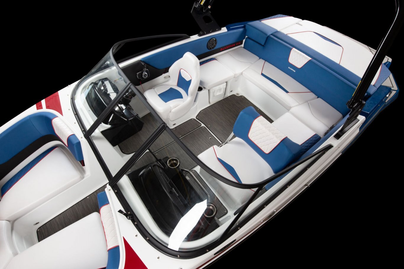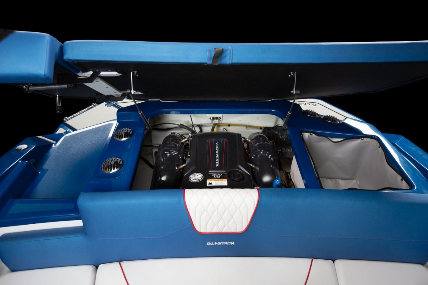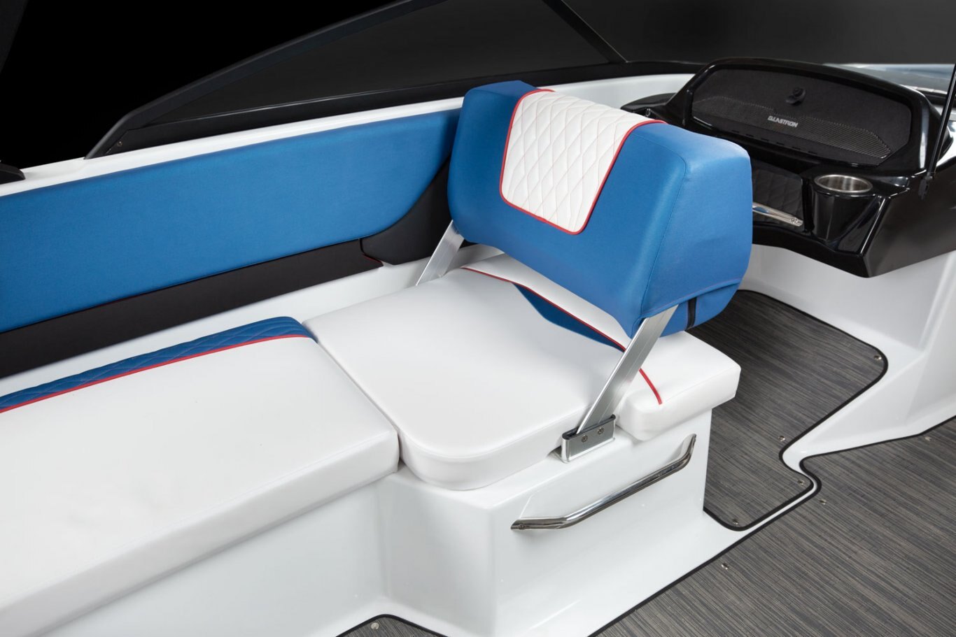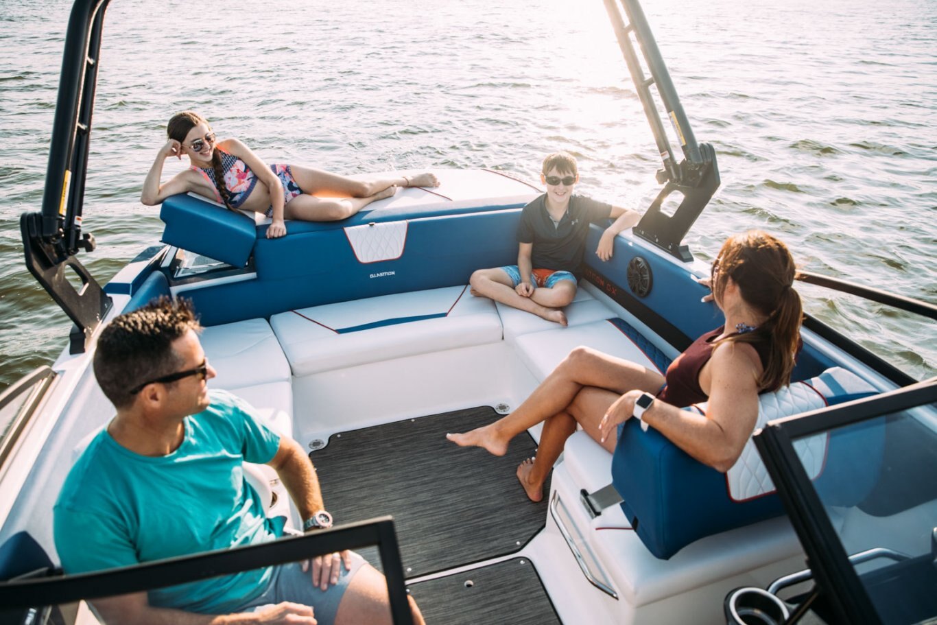 Bold GX Sport graphics and colors make this boat stand out. Adjustable port-side seat, large sun pad, and a bucket helm seat with bolster allow you to settle in. Add the premium sound package with RGB lighting to enjoy your tunes and light up the night.