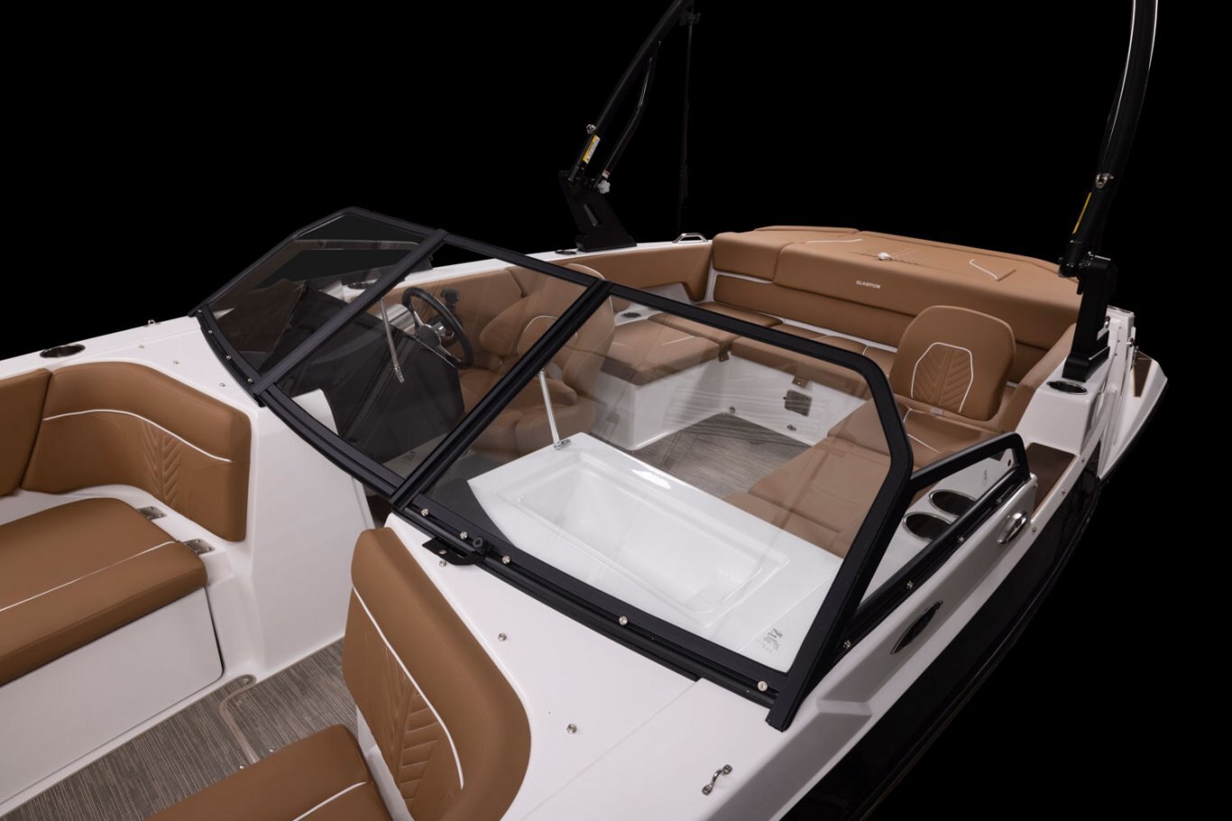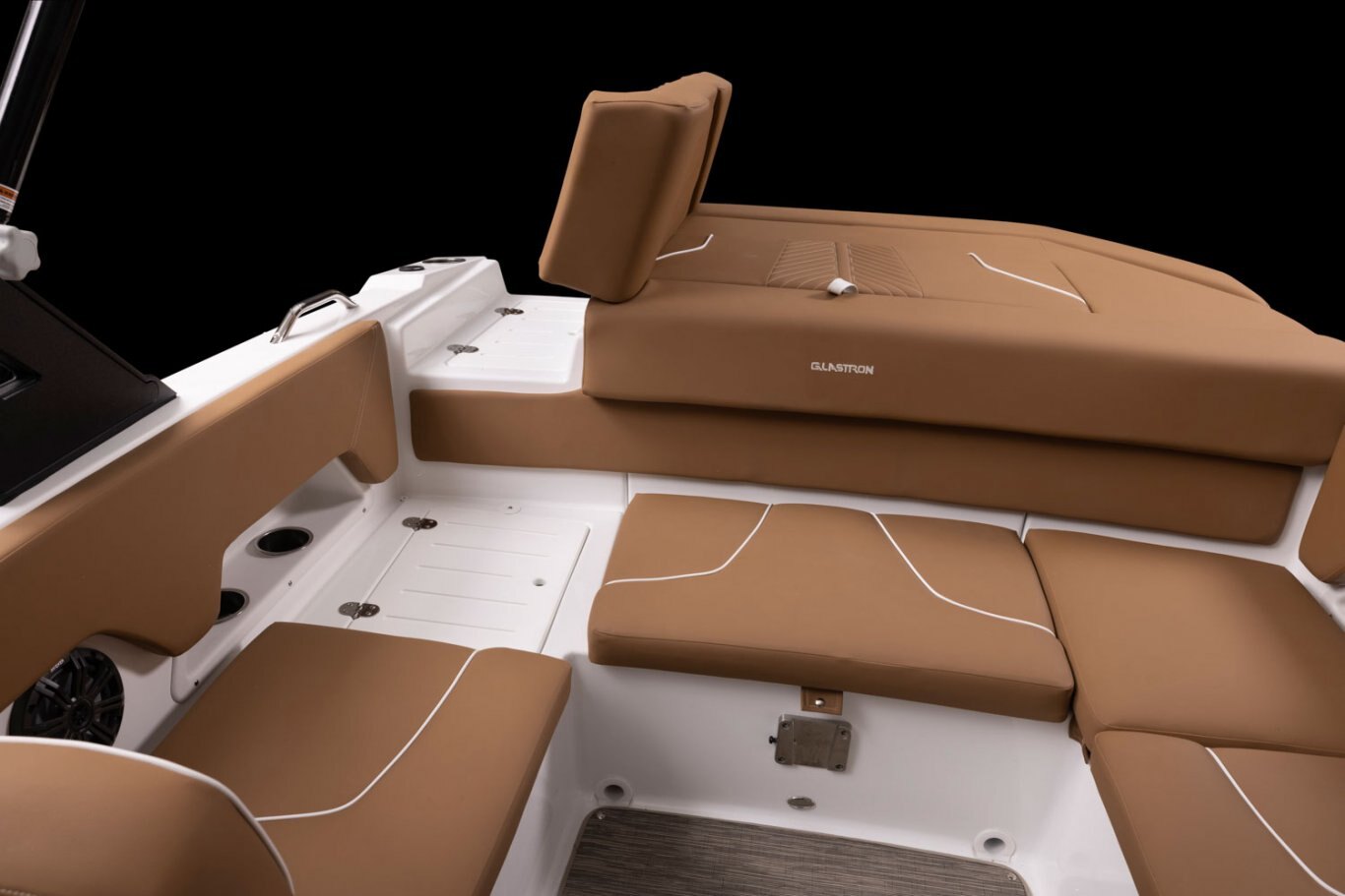 With sterndrive performance and an excess of deluxe features, the GTD 225 provides a perfect place for boaters to relax, lounge, and entertain. Beautiful interior fabrics offer cushy seating, while the widened floor plans significantly improve spaciousness and maneuverability. An extensive list of available accessories accompany the GTD 225, so you can truly make it yours. How about the wakeboard tower for added water sports play throughout the day; or, the stereo upgrade for variable LED backlights to set the perfect mood in the evening?