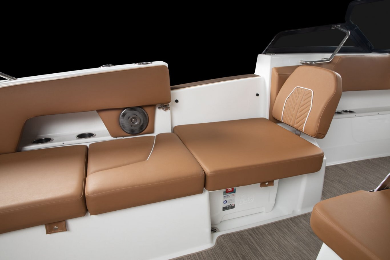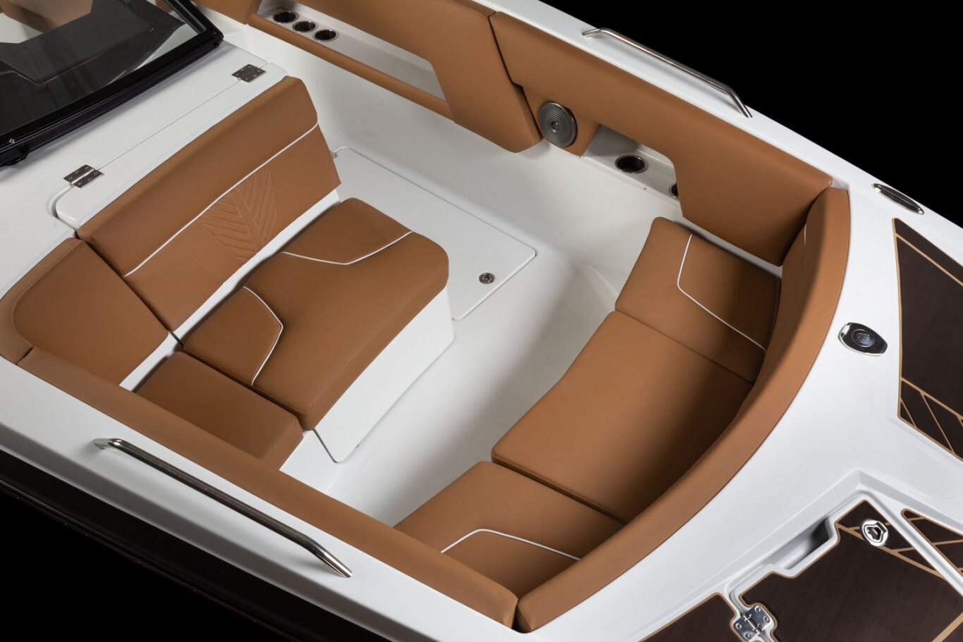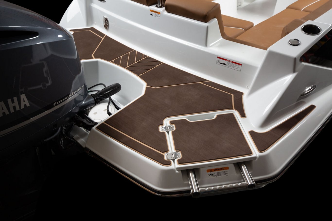 The flagship of our outboard lineup, the GTD 240, is spacious and versatile. An asymmetrical bow provides an ample area to lounge and relax, as well as space for a large enclosed changing room or an optional head. Duel helm adjustable seats and a u-shaped cockpit mean space will never be an issue as you enjoy water sports or conversation. Large swim platforms provide access to multiple boarding ladders and a walk-across design, while the side entry step is certainly fit for entry, seating, and even more storage needs.