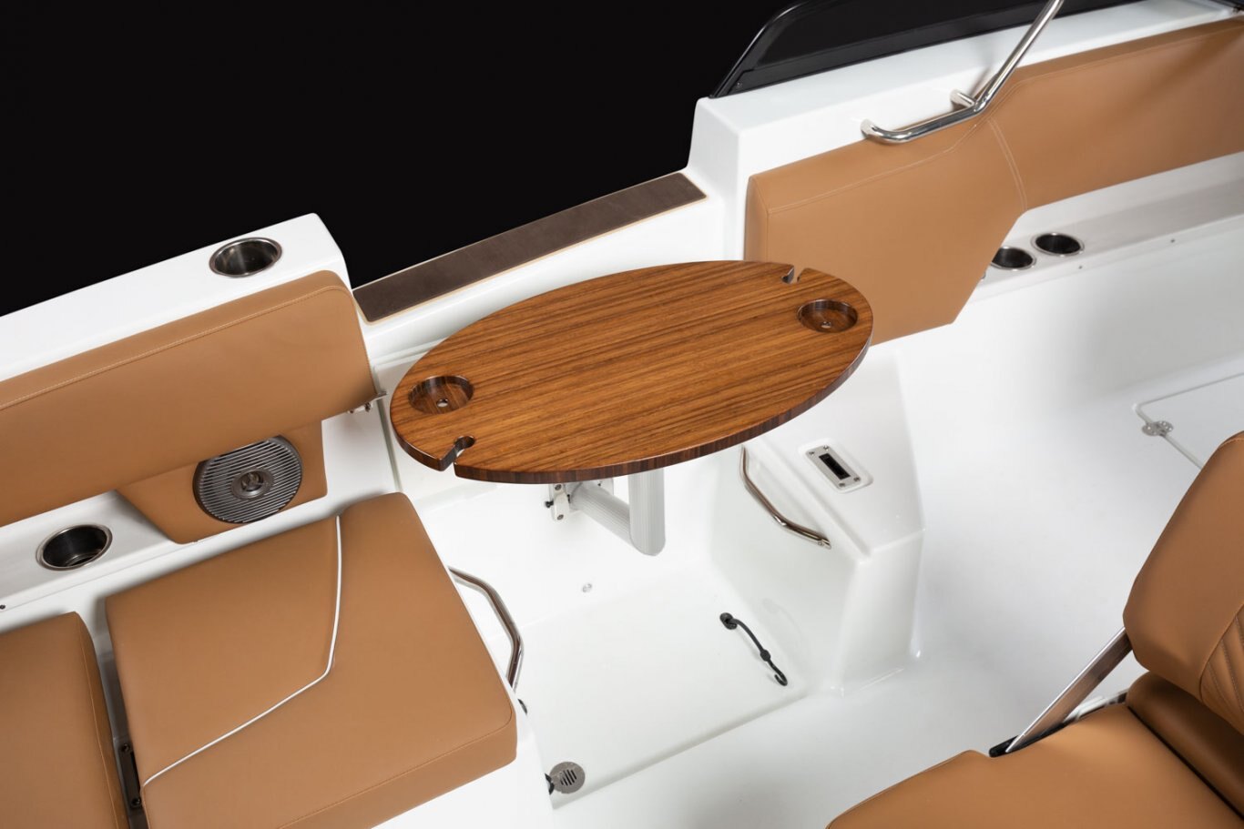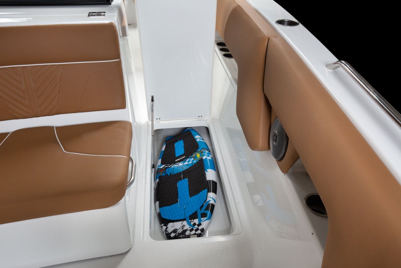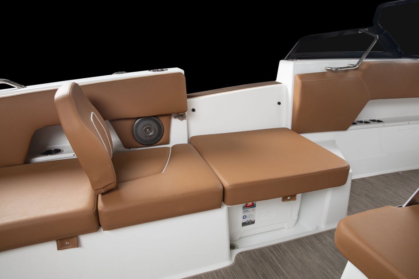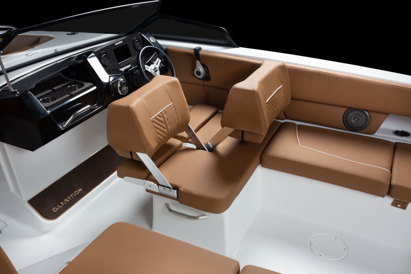 The flagship of our outboard lineup, the GTD 240, is spacious and versatile. An asymmetrical bow provides an ample area to lounge and relax, as well as space for a large enclosed changing room or an optional head. Duel helm adjustable seats and a u-shaped cockpit mean space will never be an issue as you enjoy water sports or conversation. Large swim platforms provide access to multiple boarding ladders and a walk-across design, while the side entry step is certainly fit for entry, seating, and even more storage needs.