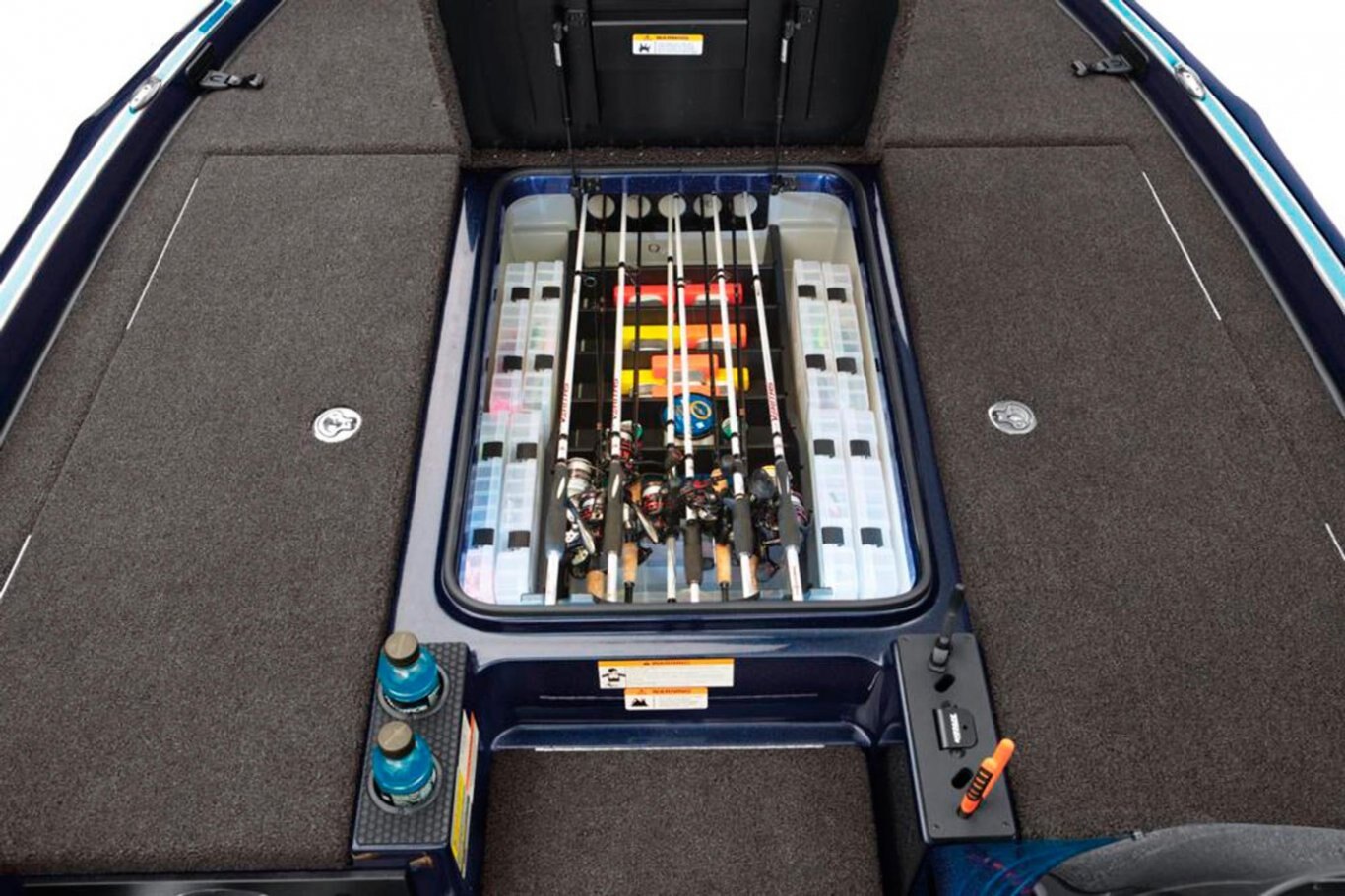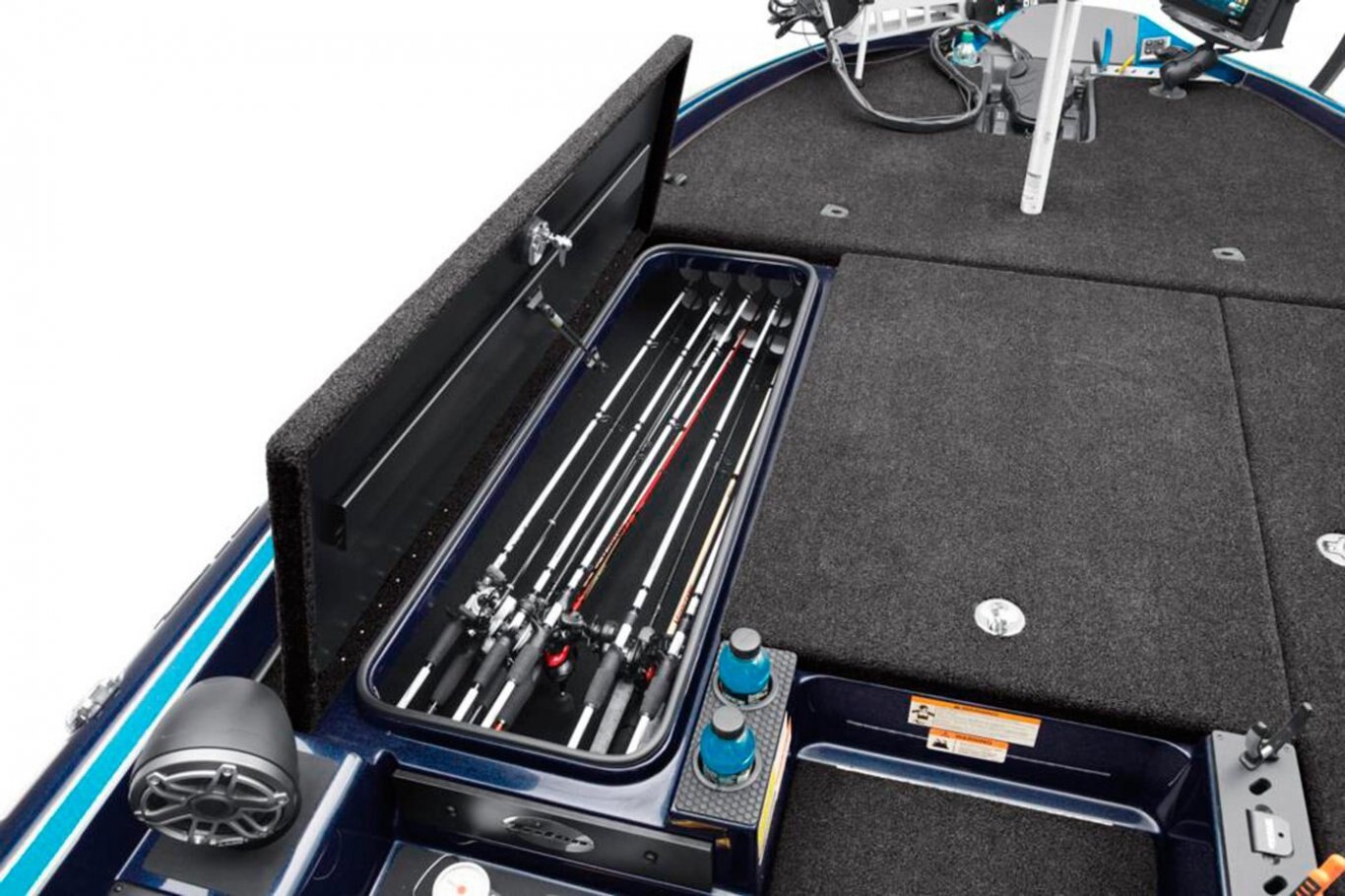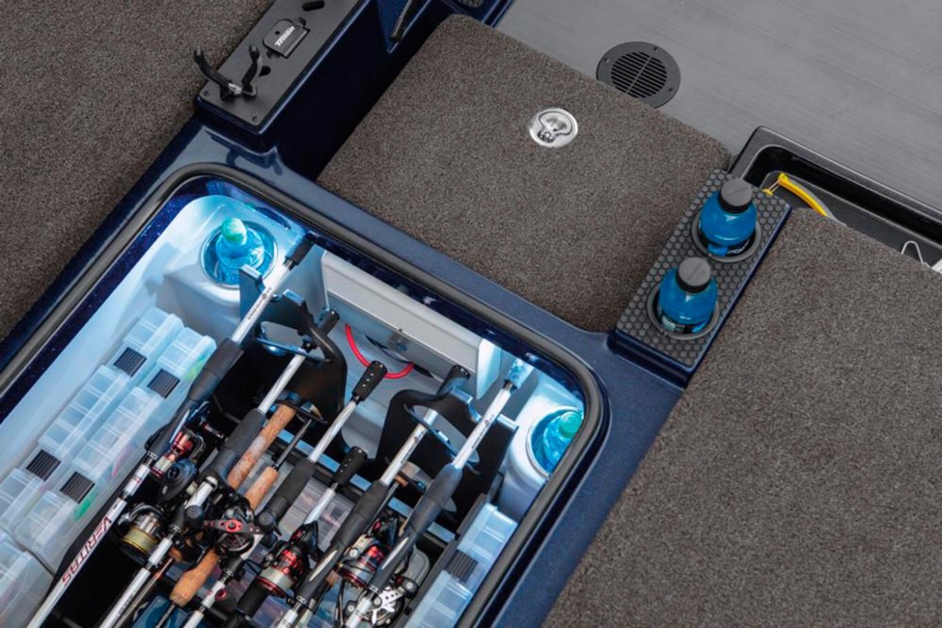 "Stay-Full" Livewell Overflow System 2-800 gph Livewell Aerator Pumps 2-800 gph Livewell Recirculation Pumps 2-800 gph Livewell Pumpouts Two Hi-Capacity Rear Insulated Livewell with Insulated Lids 1-Bike Seat with Hydraulic Pedestal Seat Pole Centric II™ Pedestal Seat with Mesh Suspension 2-Front Pedestal Locations 3-Retractable Rod Buckles, 2-Bow, 1-Rod Ramp Front Deck Drink/Bait-Holder Bow Trim Switch Built-in Fish Measuring Board with Tool Holder LED Compartment Lights Stainless Steel Capped Fittings Above Rubrail Oversized Rod Lockers Passenger-Side Rod Ramp Locking Oversized Storage Boxes Livewell Aerator Timer Lowrance® HDS 7 LIVE w/AI at Dash Minn Kota® Fortrex 112lb/45" Port Side 8' Rod-Rack with 12-Rod Capacity Trolling Motor Foot-Control Deck Recess Center Storage Box Tackle Organizing System Landing Net and Holder