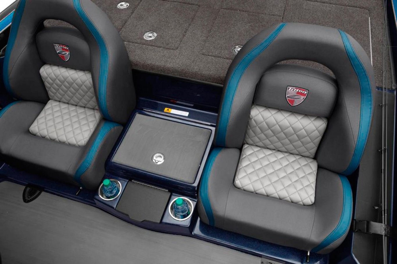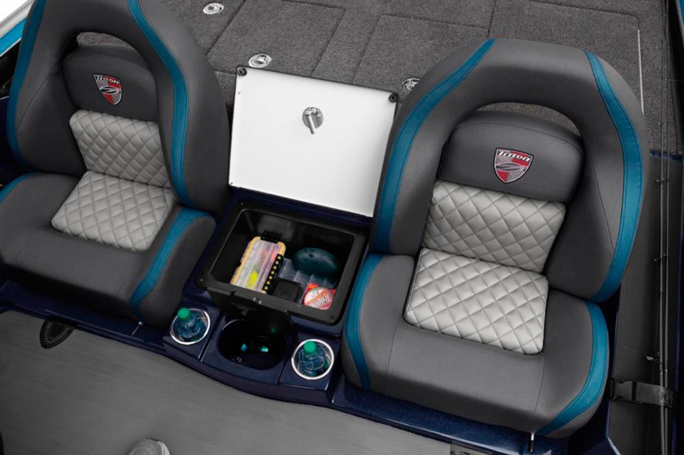 New Deluxe 3-Spoke Steering Wheel w/ Center Cap (10) Standard Color Schemes to Choose From (4) Premium Color Packages to Choose From Cockpit Seat Risers Center Console with Fiberglass Lid Extended Leg-Room Driver's Console Tilt steering Dual Pro On Board Charger 15 x 4 Stainless Steel Bow and Transom Eyes Stainless Steel Pull-Up Cleats Built-in Ice-Chest in Front-Deck Step Stainless steel drink holders Removable Windshield Newly Restyled Adjustable Driver and Passenger Suspension Bucket Seats Stainless Steel Prop Chrome Fuel Fill Remote drain plug Front Deck Carpet Padding Trolling Motor Battery Trays Only Cranking battery with tray Padded Dash with Tachometer, Speedometer, Voltmeter, Fuel, Trim and Water-Pressure Gauge 2 Rod Locker Lid Pistons 2-Storage Box Lid Pistons Engine Trim Lever on the Helm Lucas® Oil Detail Kit