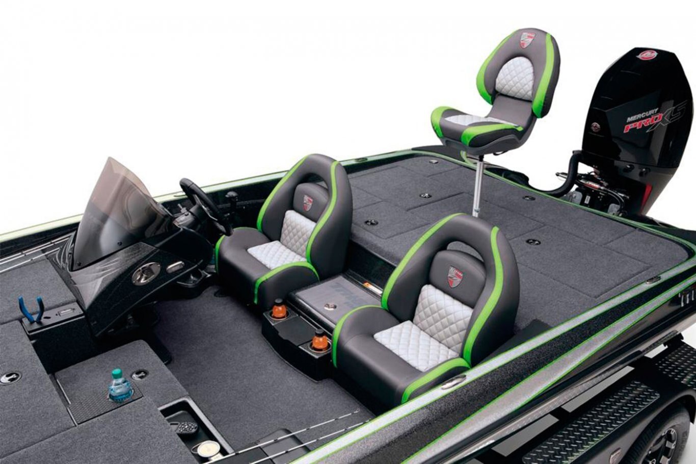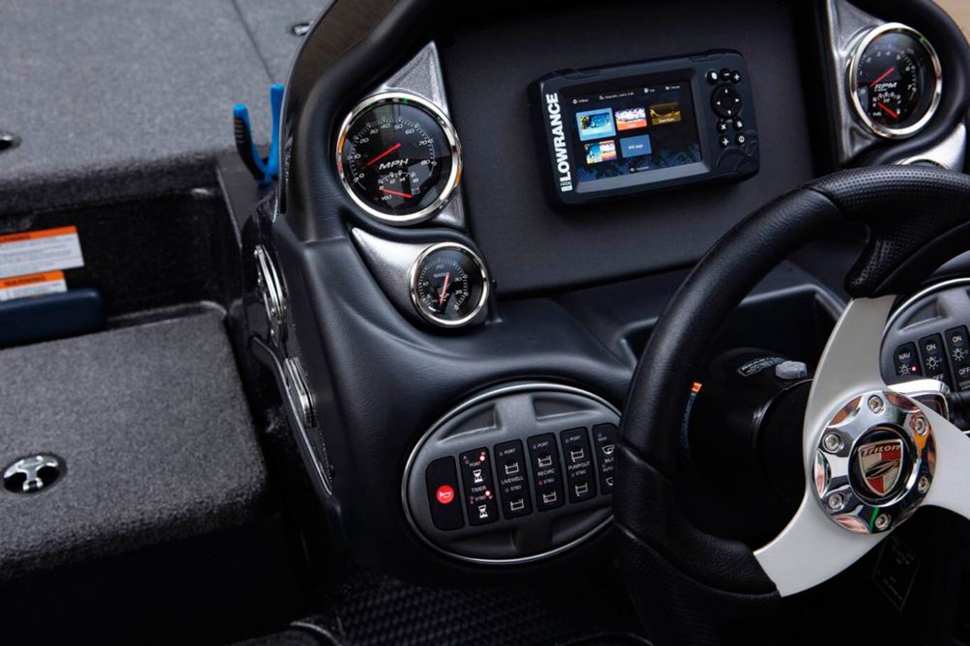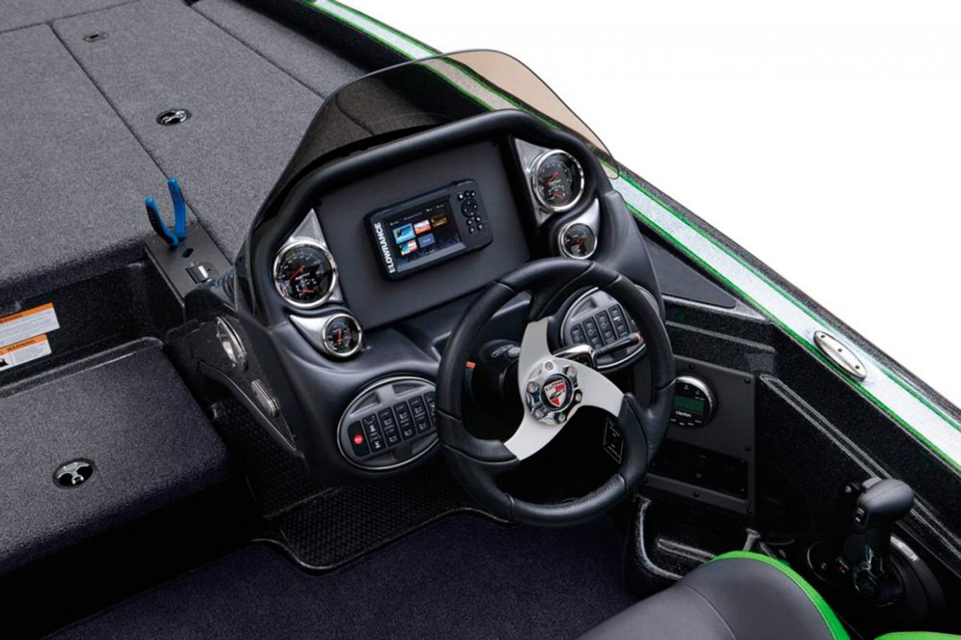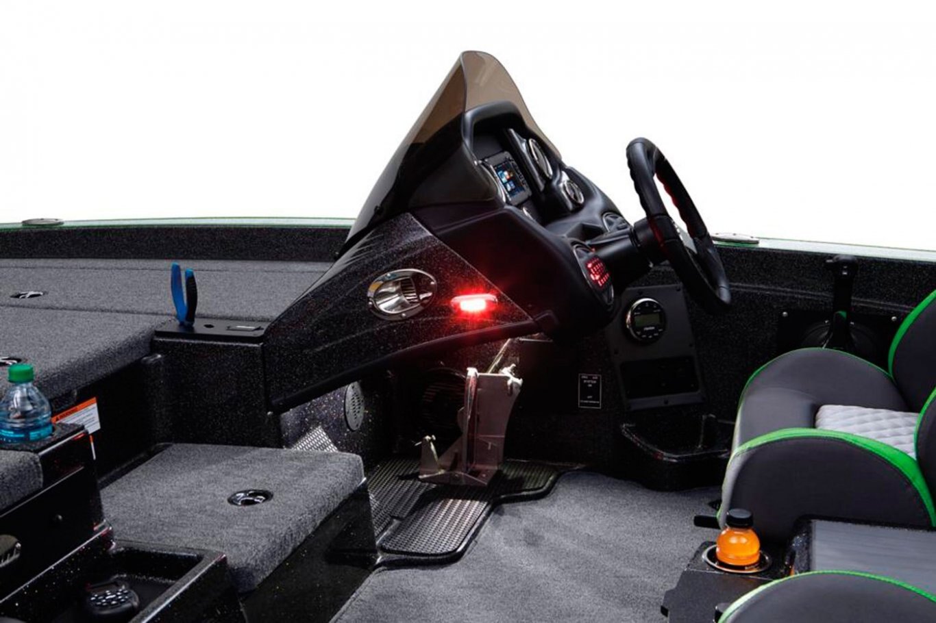 New Deluxe 3-Spoke Steering Wheel w/ Center Cap (10) Standard Color Schemes to Choose From (4) Premium Color Packages to Choose From Newly Restyled Driver and Passenger Bucket Seats Center Console with Fiberglass Lid Extended Leg-Room Driver's Console Tournament Series Gauge Package Nitrogen Lid Lifts Stainless Steel Bow and Transom Eyes Stainless Steel Pull-Up Cleats Built-in Ice-Chest in Front-Deck Step Stainless steel drink holders Removable Windshield Stainless Steel Prop Chrome Fuel Fill Remote drain plug Front Deck Carpet Padding Trolling Motor Battery Trays Only Cranking battery with tray Padded Dash with Tachometer, Speedometer, Voltmeter, Fuel, Trim and Water-Pressure Gauge Engine Trim Lever on the Helm Lucas® Oil Detail Kit
