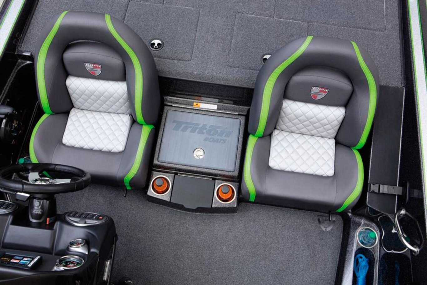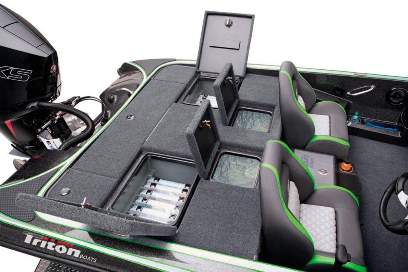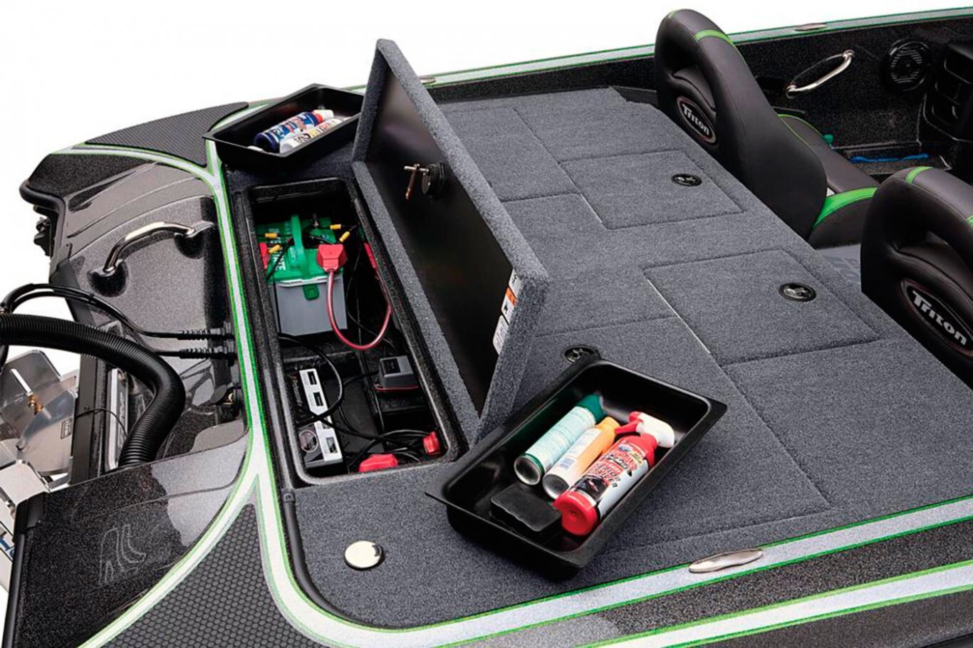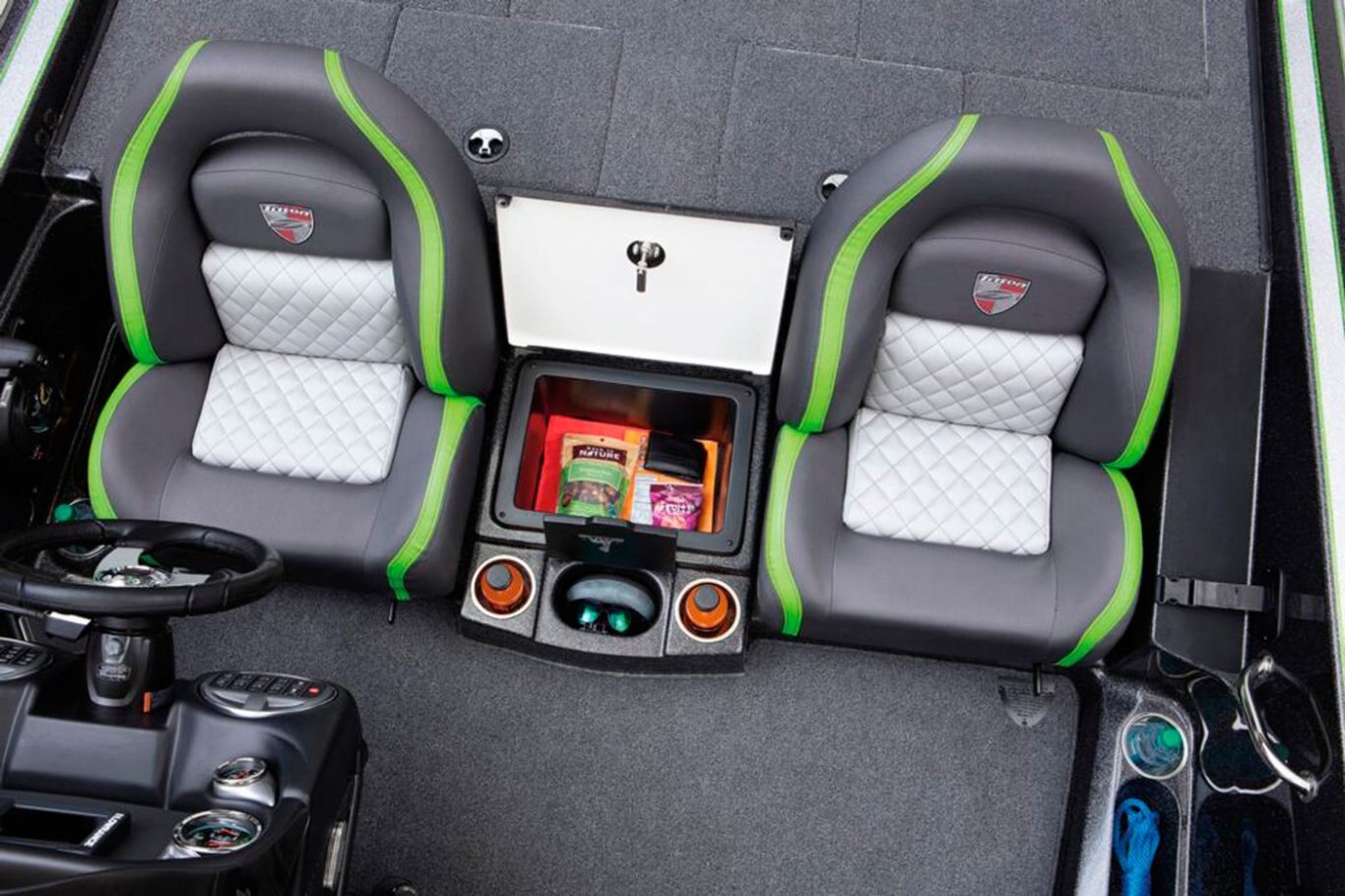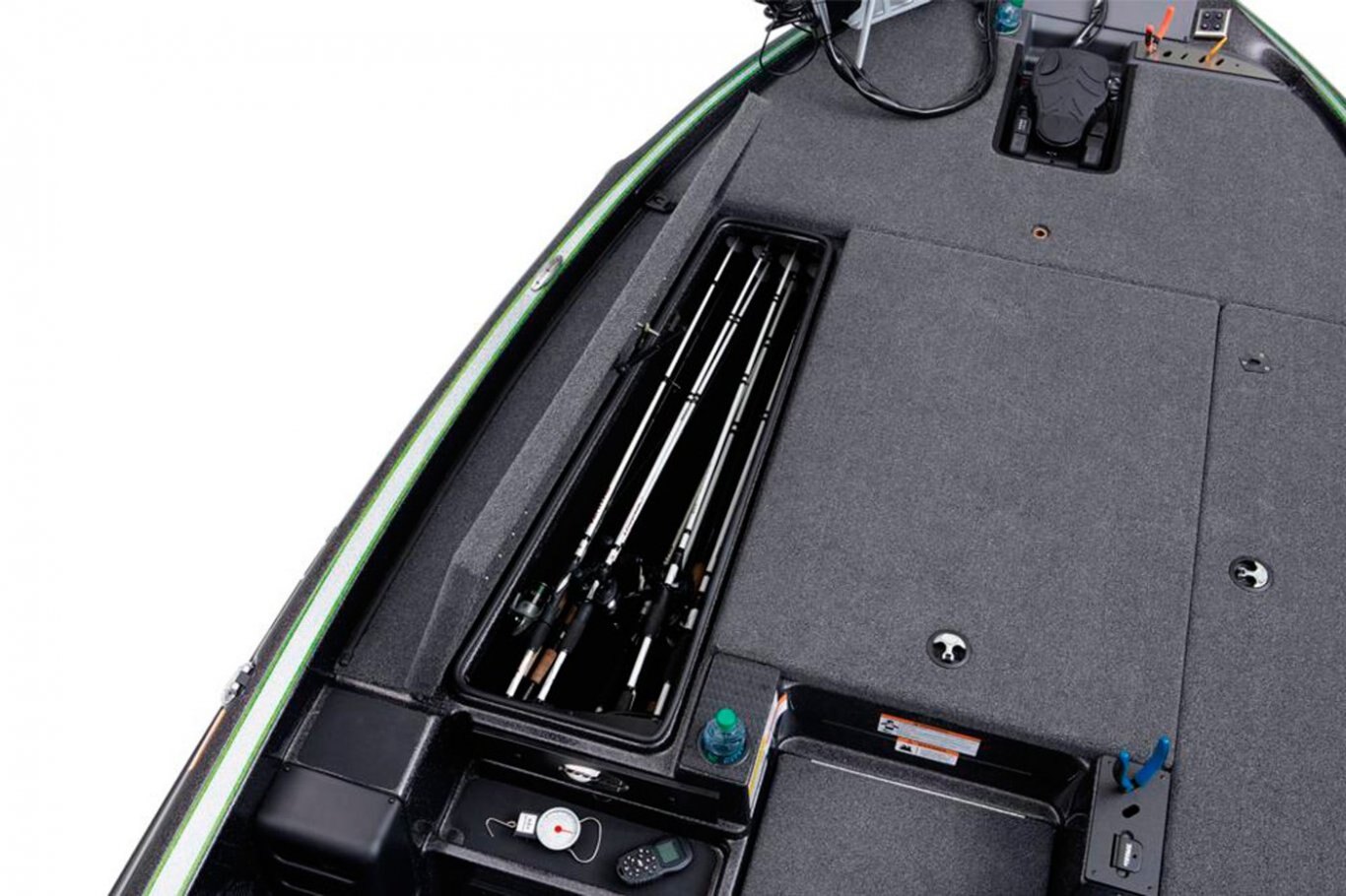 1-800 gph Livewell Aerator Pump with Timer 1-800 gph Livewell Recirculation Pump 1-800 gph Livewell Pumpout Hi-Capacity Rear Insulated Livewell with Divider 1-Bike Seat with Hydraulic Pedestal Seat Pole Centric II™ Pedestal Seat with Mesh Suspension Front Deck Drink/Bait-Holder Bow Trim Switch Built-in Fish Measuring Board with Tool Holder Stainless Steel Capped Fittings Above Rubrail Oversized Rod Lockers Passenger-Side Rod Ramp Locking Oversized Storage Boxes Livewell Aerator Timer Lowrance® Hook Reveal 5 Combo Minn Kota® Edge 70lb 24V Trolling Motor Foot-Control Deck Recess 2 Retractable Rod Buckles on Front Deck