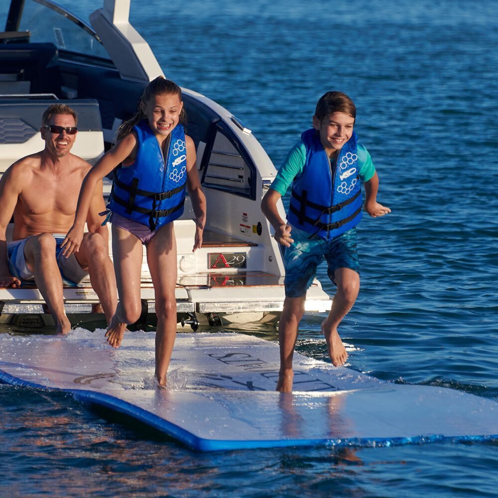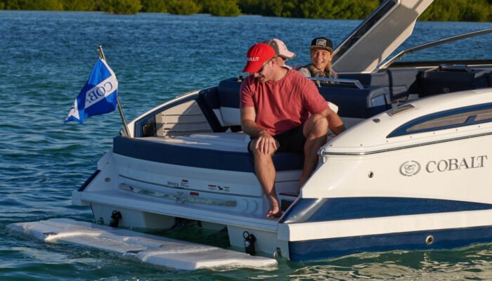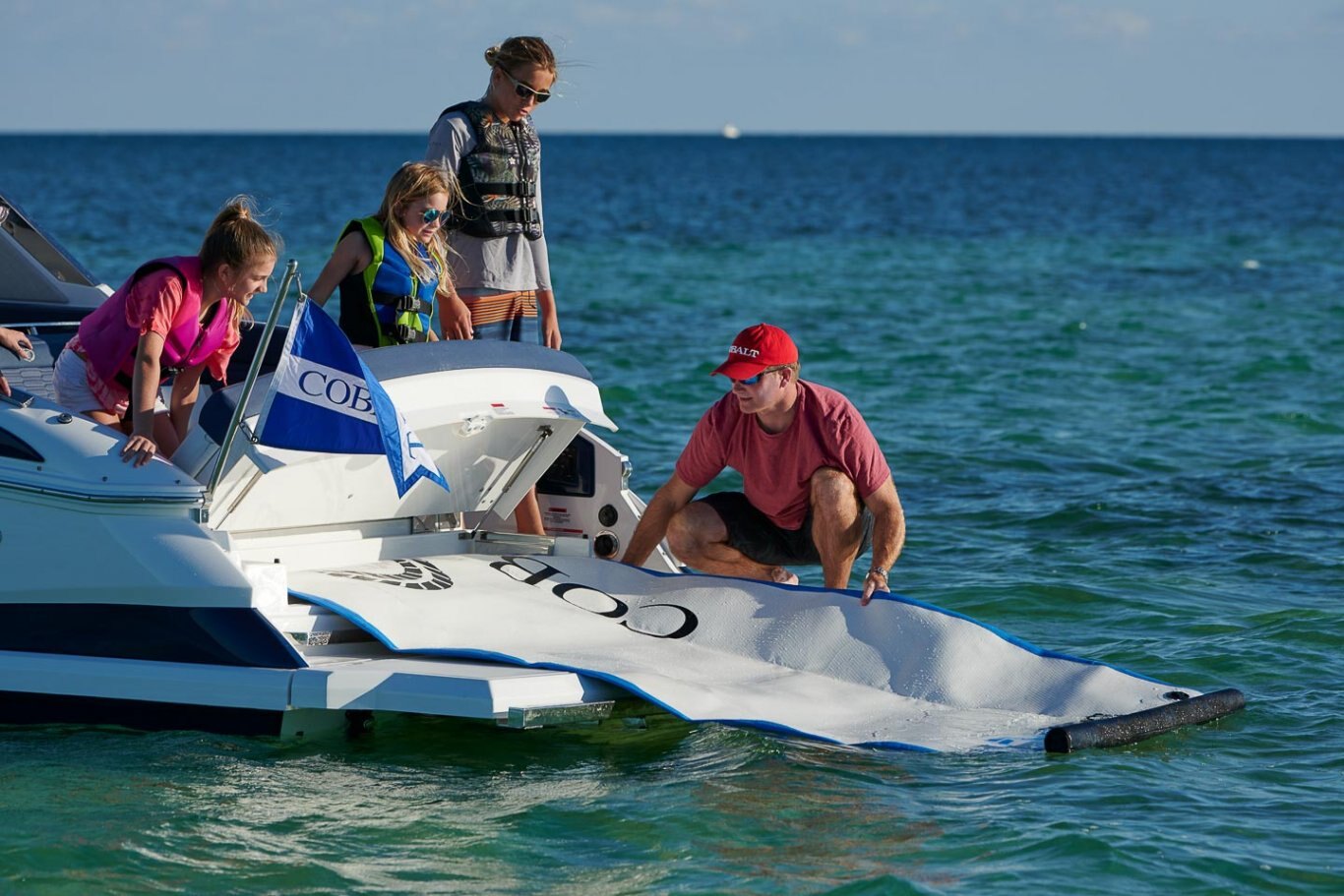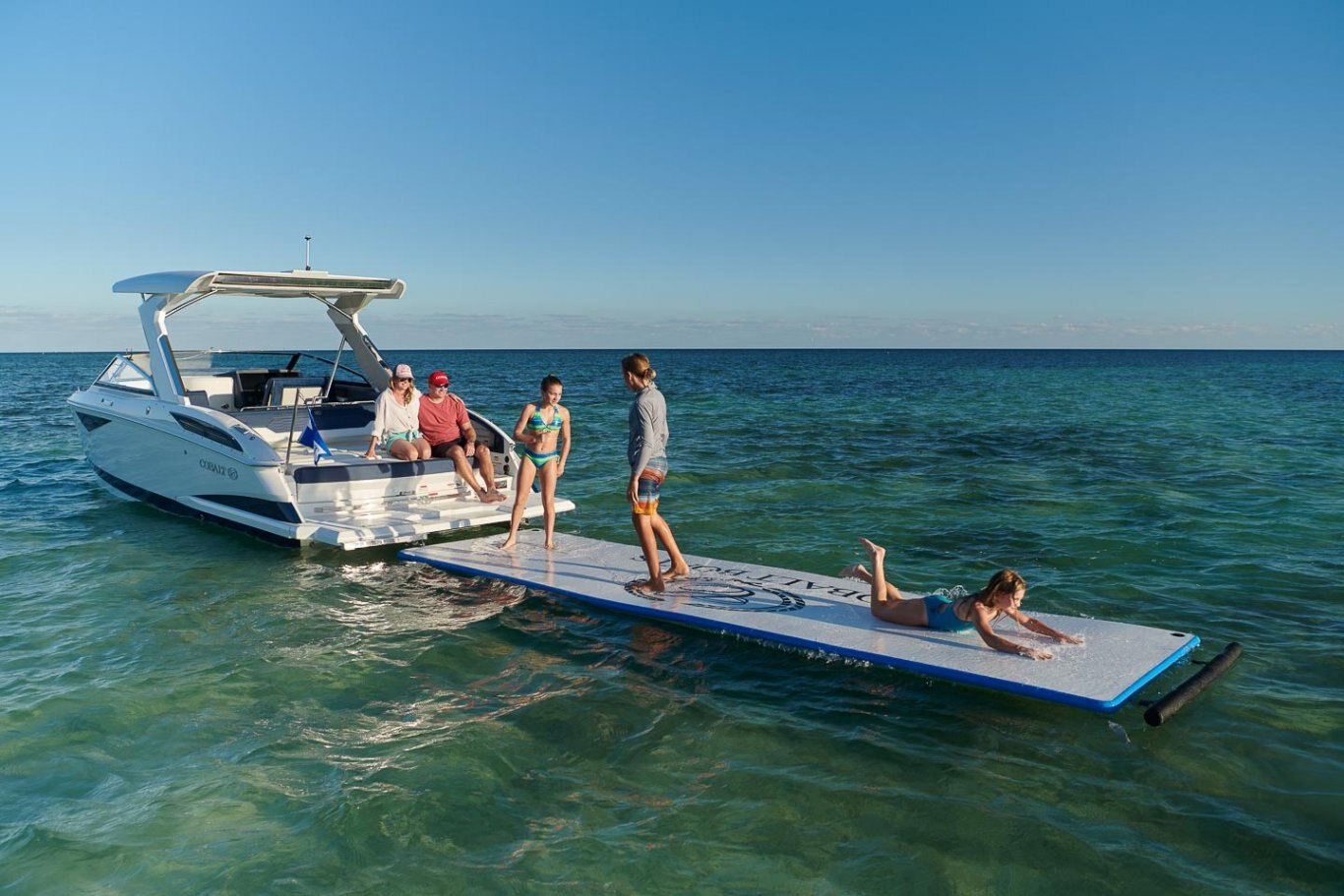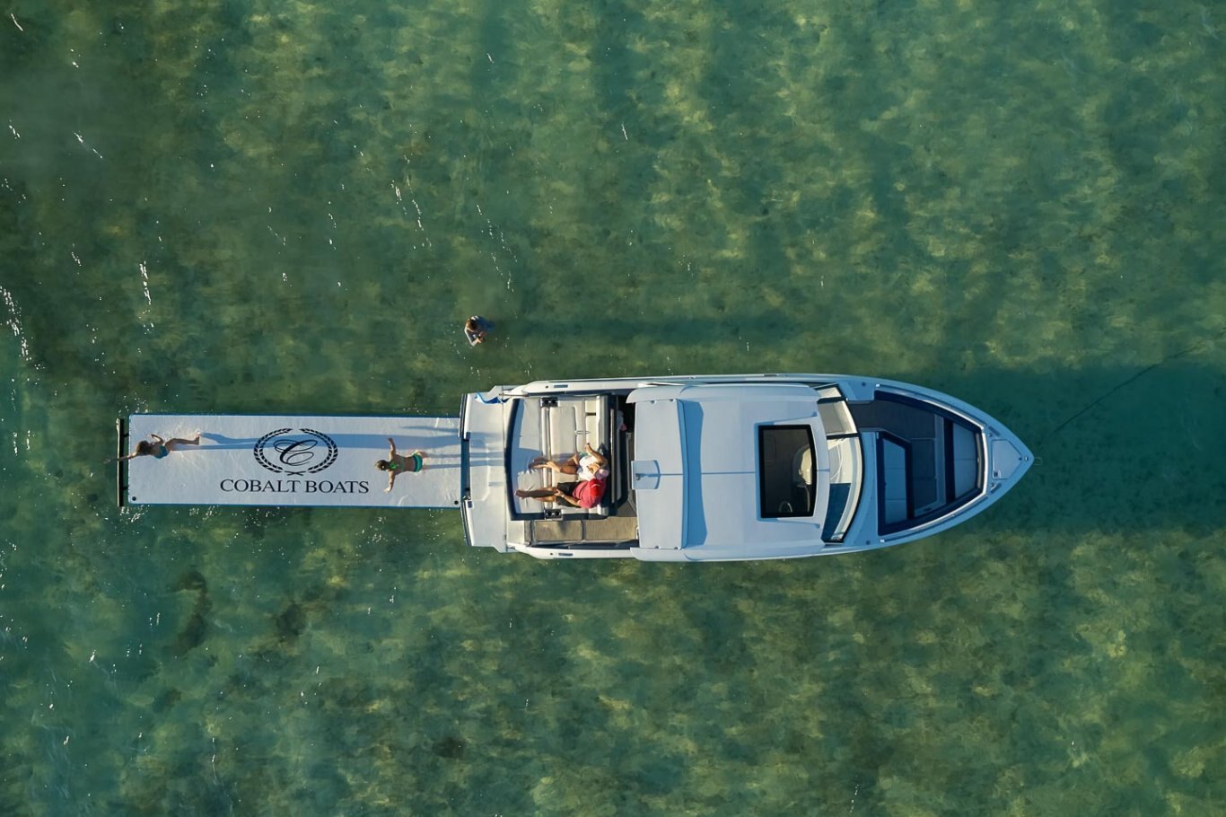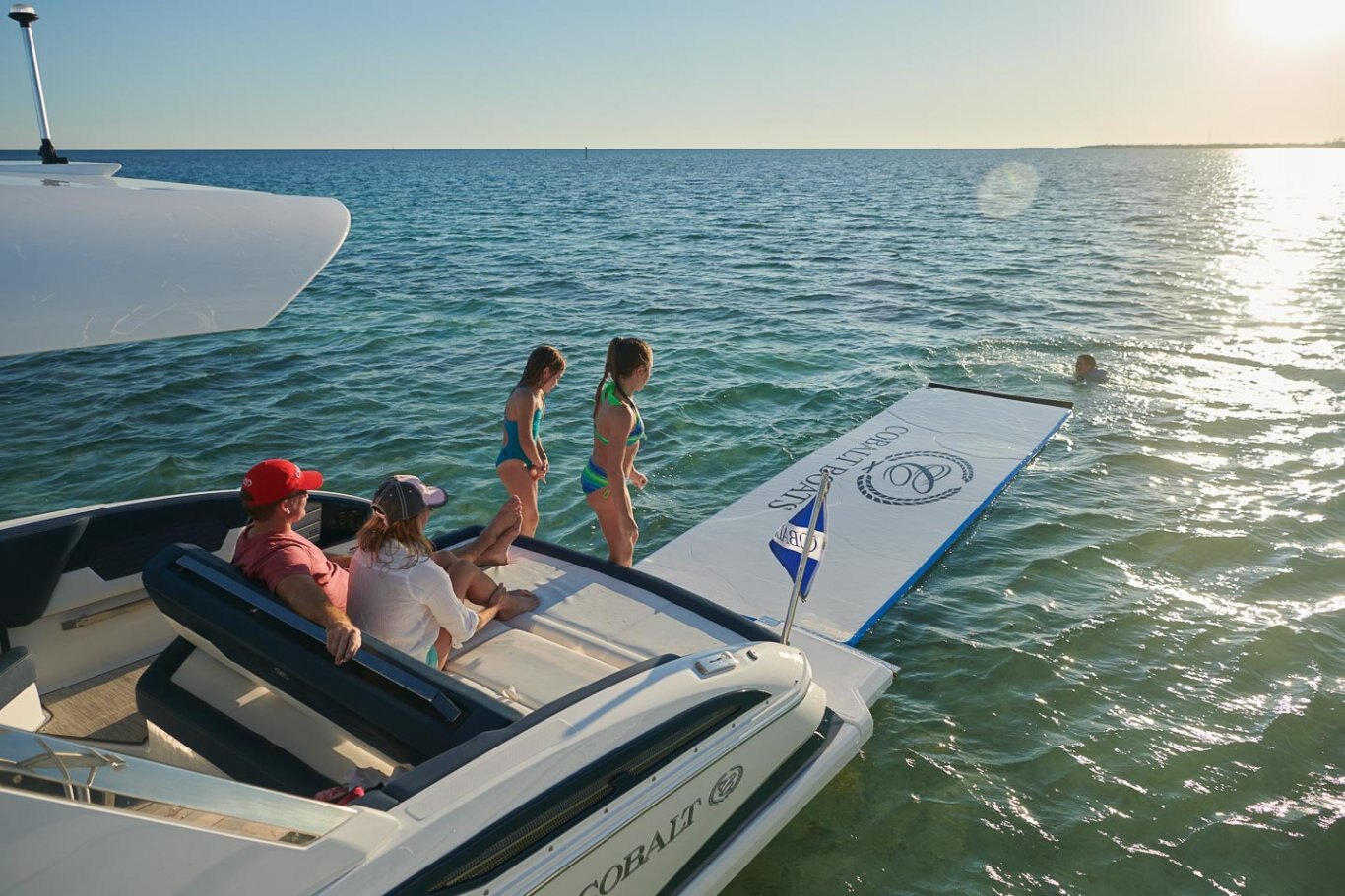 Cobalt’s award-winning Splash & Stow™ eliminates the traditional way of transporting, deploying, and retrieving heavy-duty, yacht-style inflatables. At the quick touch of a button, the inflatable is deployed and connected to the built-in power inflator, leading to hours of fun and enjoyment on the water. Available with either the Splash & Stow™ Inflatable Round Island or Inflatable Long Rectangle Mat.