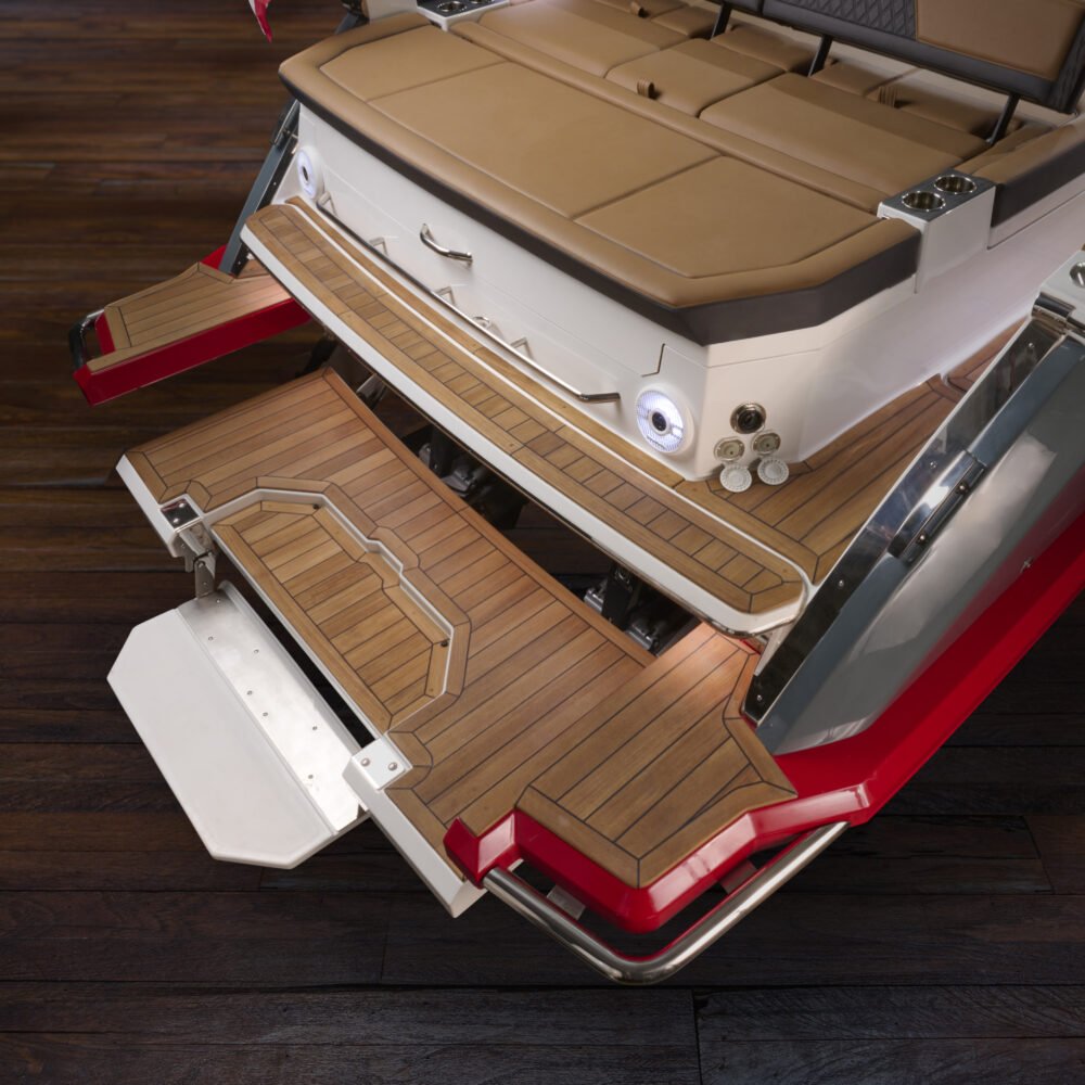 Great for water activities, the entire full-width swim platform lowers below the water hydraulically with the push of a button, offering easy access in or out of the water and into the boat.