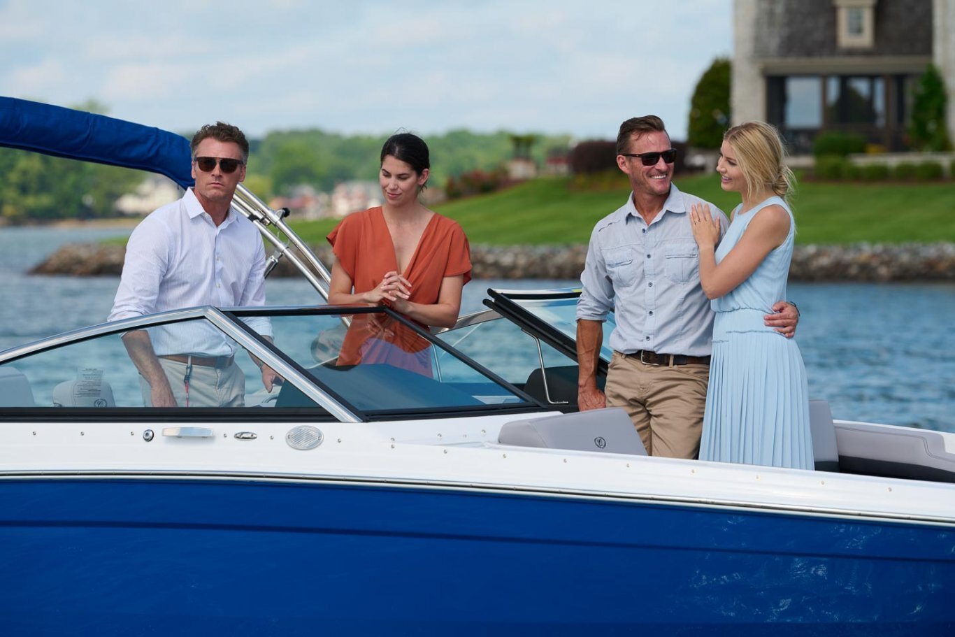 Our patented Flip Down Swim Step makes both lounging on the back of the boat and re-entry easy and enjoyable. For even more luxury and ease of use, you can opt for the new Powered Swim Step, which deploys in and out of the water with push-button convenience from the stern