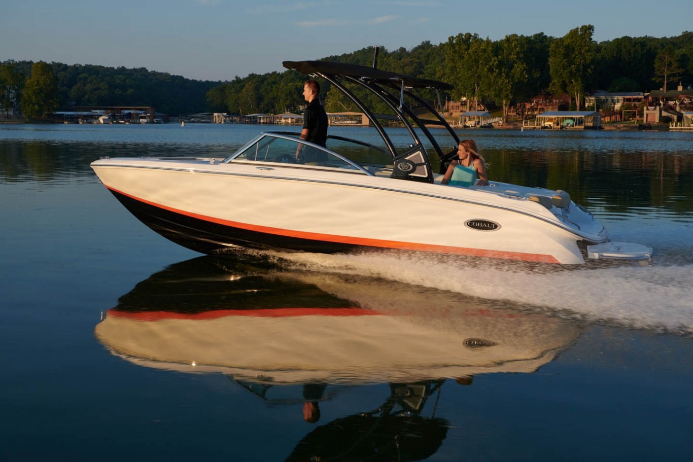 Our Zenith Arch, with fold-out bimini included, manually folds to a lower position to aid in garage storage. The simple, clean design is classic Cobalt and comes in either black or white and has easier-to-grip rotating turn handles and cam-locks for locking the Arch in the up-position. New board rack adapters integrate well with the styling of the Arch vs. pipe-clamp style mounts.