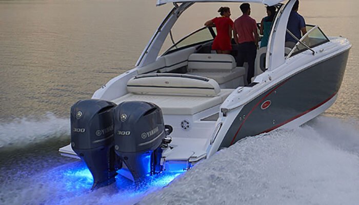 | The 30SC comes with standard twin engines, plus a spacious interior with quality amenities, ultimate comfort, and a 9’ 10” beam that offers a large entertaining space with a luxurious yacht feel to make your days and nights on the water feel special. |