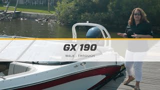 DISCOVER THE GX 190 The GX 190 respects Glastron's legacy with the classic sweep spear we all love. And comfort is king with wrap-around backrest...