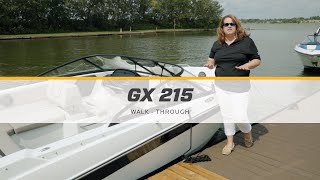 DISCOVER THE GX 215 SPORT Bold GX Sport graphics and colors make this boat stand out. Adjustable port-side seat, large sun pad, and a bucket helm...
